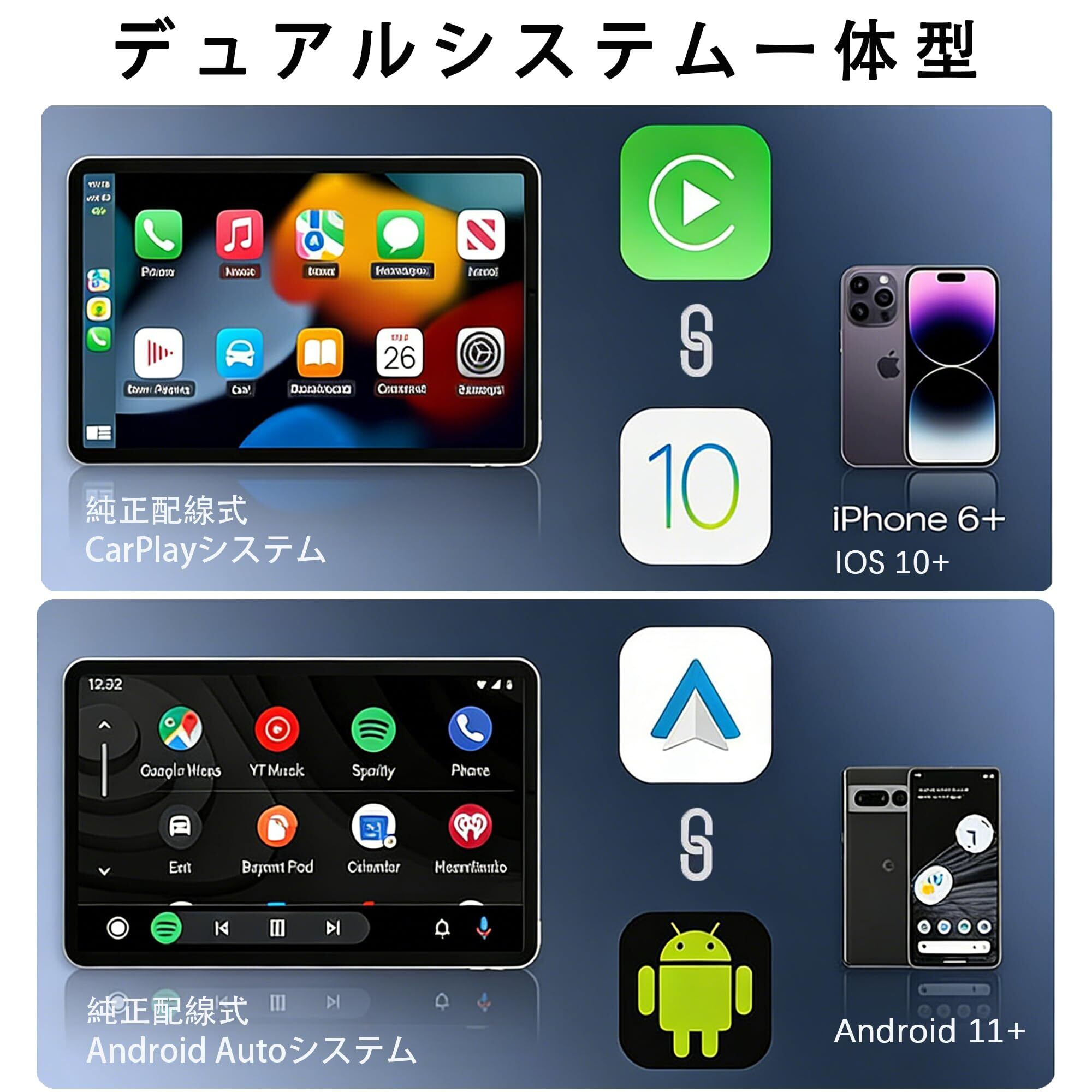 2-in-1 ワイヤレスアップグレード & デュアルシステム対応: 純正有線 CarPlay / Android Auto を瞬時にワイヤレス化。iPhone(iOS 10 以上、iPhone 6 以上)と Android(Android 11 以上)のシームレスな切り替えをサポート。1,000 車種以上に対応(有線サポート必須)。 注意:お車にCarPlay/Android Autoの内蔵機能がない場合は、ご購入にならないでください。