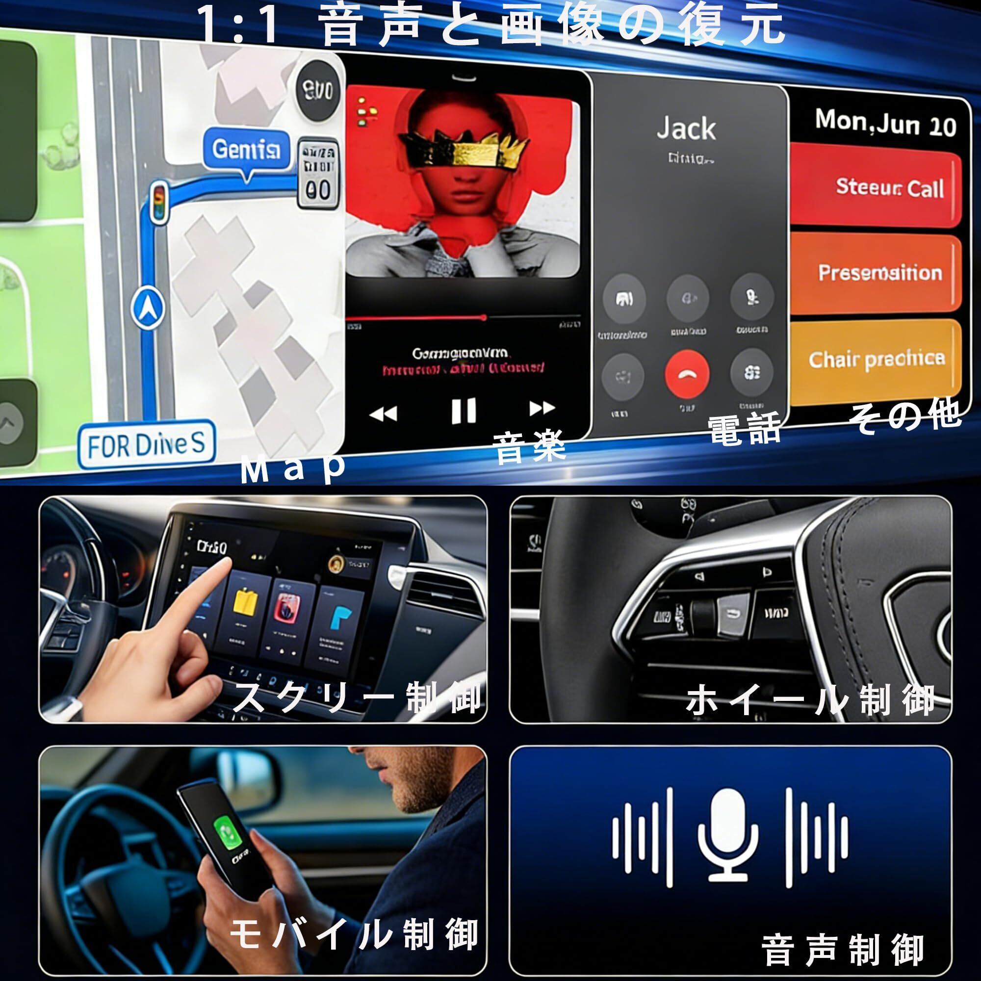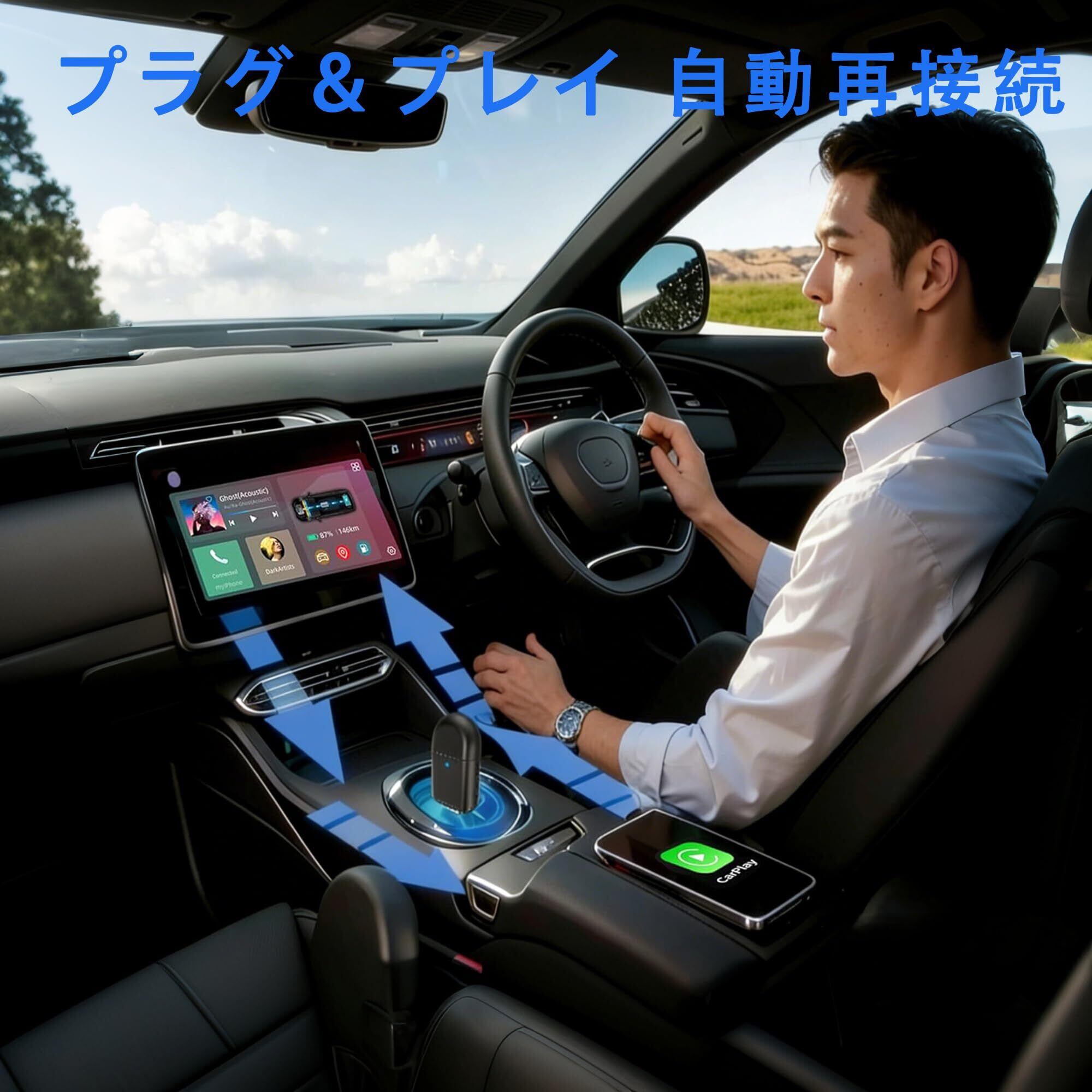 プラグアンドプレイ設定&3秒自動再接続:アプリやダウンロードは不要です。Bluetoothで一度ペアリングすれば、毎回のドライブで3秒以内の瞬時自動再接続を実現します。また、デュアルバンドチップ(2.4GHz/5.8GHz Wi-Fi)を搭載しており、マップ、音楽、通話の起動速度が30%向上します。