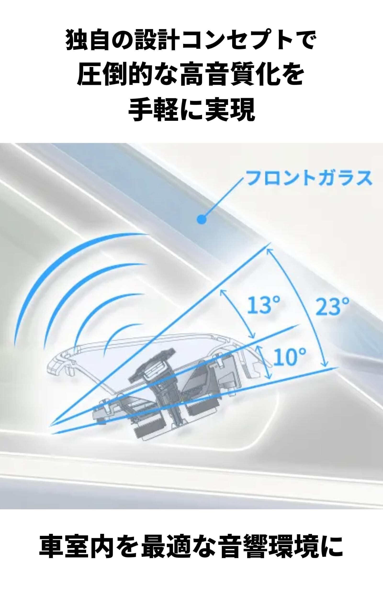 クリアな中高域再生と優れた指向性を実現する3つの独自機構を採用した専用設計で、最適な音場と臨場感を実現するノア/ヴォクシー専用スピーカー。