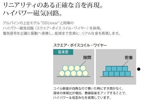 ●スクエア・ボイスコイル・ワイヤー採用のハイパワー磁気回路により、リニアリティあふれる高音質を再生