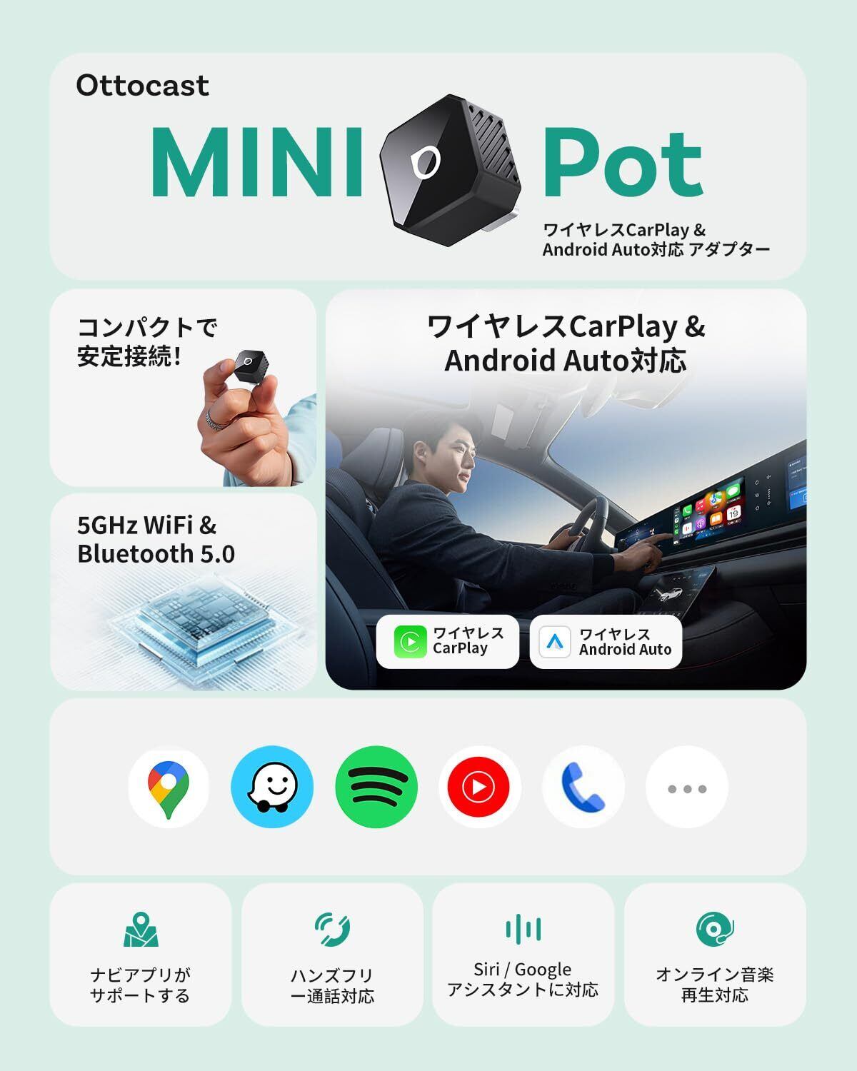 【オットキャスト2025最新 ワイヤレスCarPlay/Android Autoアダプター Mini Pot--Type-Cポート専用】】有線接続の煩わしさから解放!ワイヤレス接続で快適なドライブをサポートし、プラグ&プレイ仕様で簡単にセットアップ。いつでもスムーズに操作でき、あなたのカーライフをグレードアップします。