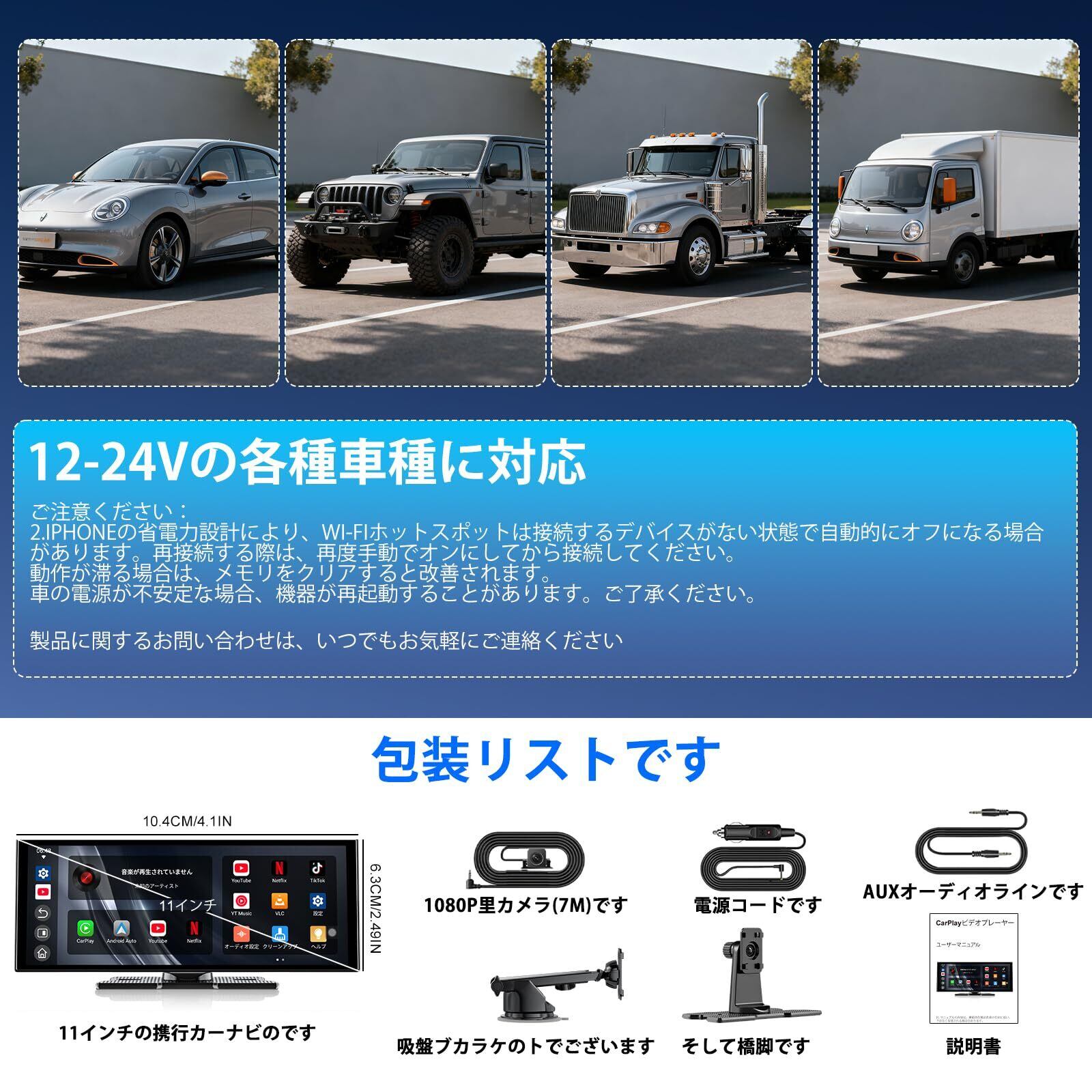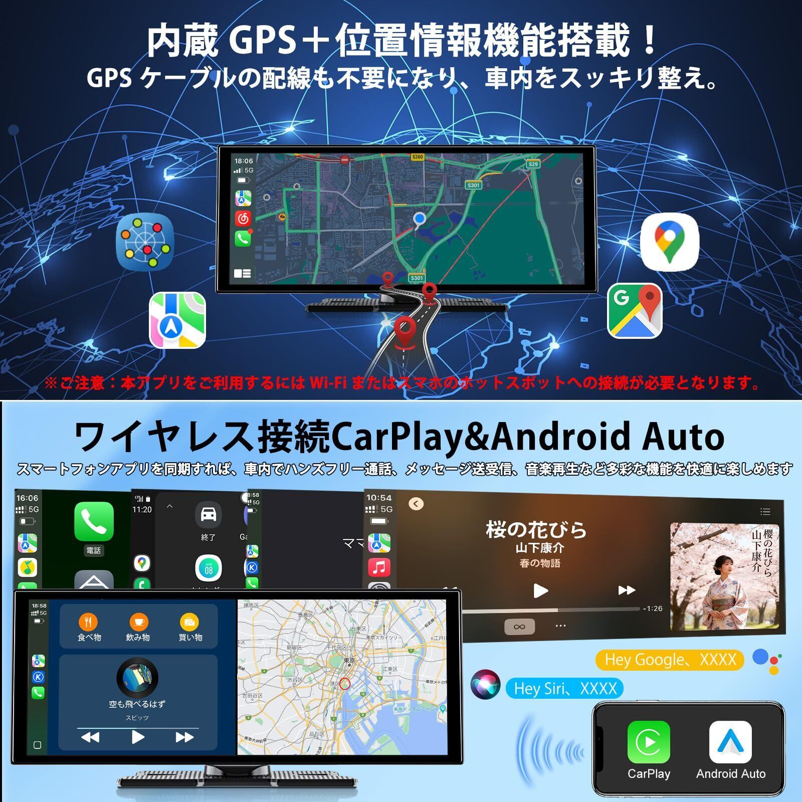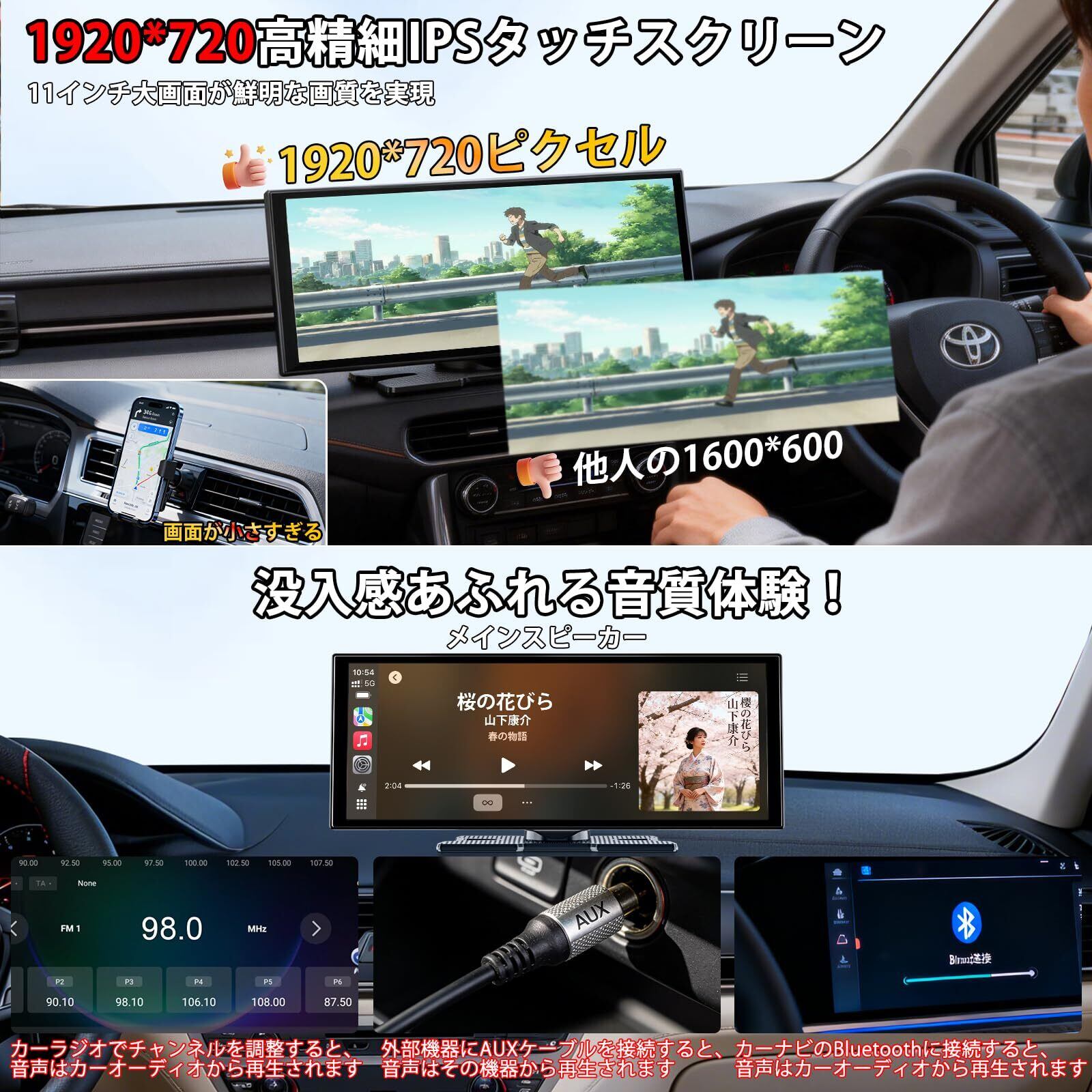 Accfly新型11インチ多機能ポータブルディスプレイオーディオYouTube/Netflixなど人気アプリ対応、 Gemini Ai 、Google Play、カーナビ内蔵GPS、 ワイヤレスCarPlay/Android Auto接続、分割画面表示、1920*720 HD、1080Pバックカメラ搭載