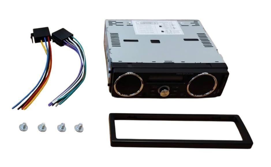 仕様:電源12VDC(10.8V〜16.0V) 内臓スピーカー:15w x2 内臓スピーカーインピーダンス:4Ω 内臓サブウーファー25W 内臓サブウーファーインピーダンス:4Ω 外部スピーカーアウトプット:40W x4 外部スピカーインピーダンス:4Ω サイズ:幅:178mm 高さ:50mm 奥行き:100mm(ハーネス、操作面含まず) 1DIN 重さ0.7kg