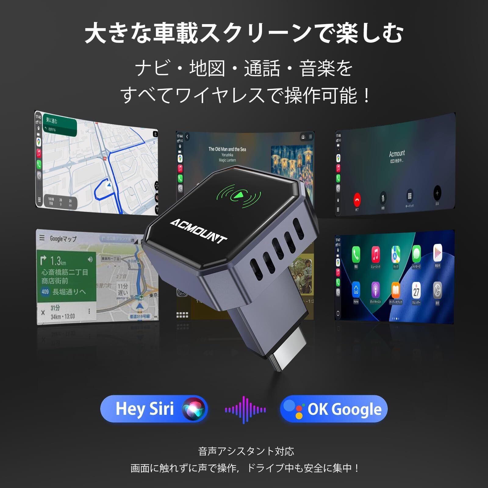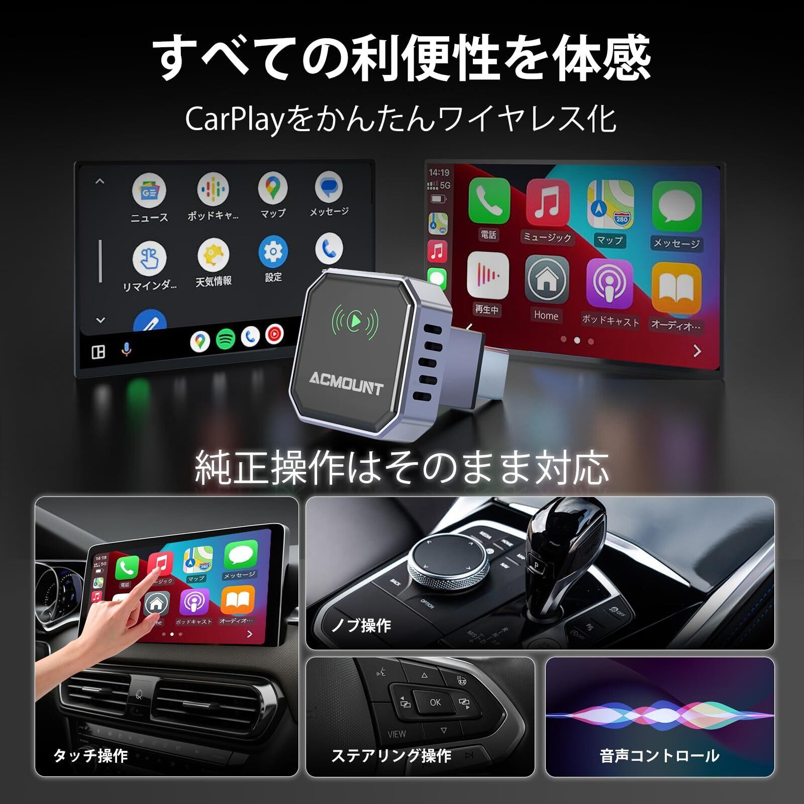 ACMOUNT ワイヤレスCarPlay/Android Auto アダプター CarPlay&AndroidAutoをワイヤレス化 純正な有線CarPlay/Android Auto搭載する車専用 Bluetooth/音楽/多言語対応 自動接続 98%以上の車種適用 技適認証取得済み 日本語取扱説明書付き(ダークグレー)