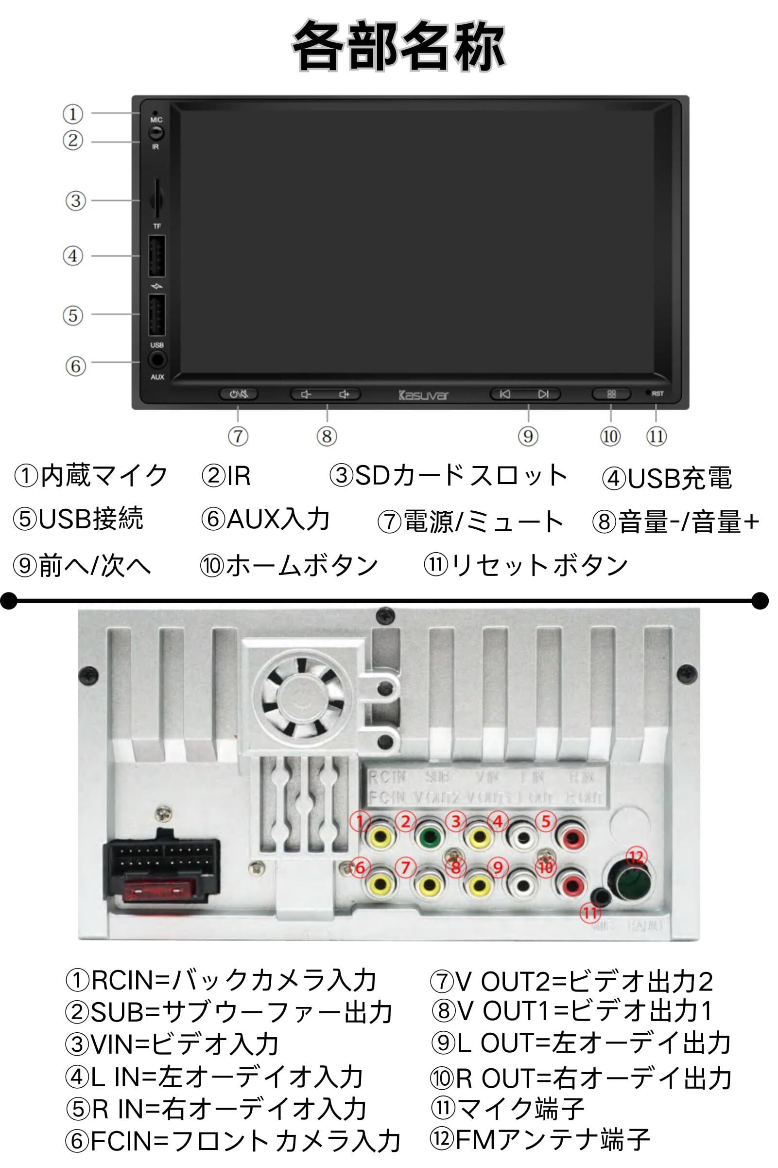 KASUVAR ディスプレイ オーディオ:スマホ連携で無線CarPlay/AndroidAuto/Airplay、Youtubeをミラーリングするカーオーディオ、バックカメラ連動、ステアリング制御、アンプ内蔵、イコライザー設定、映像出入力、USB/SD動画音楽再生可能な一体型ナビ IPSタッチパネル FM/AMラジオ Bluetooth5.0 技適取得