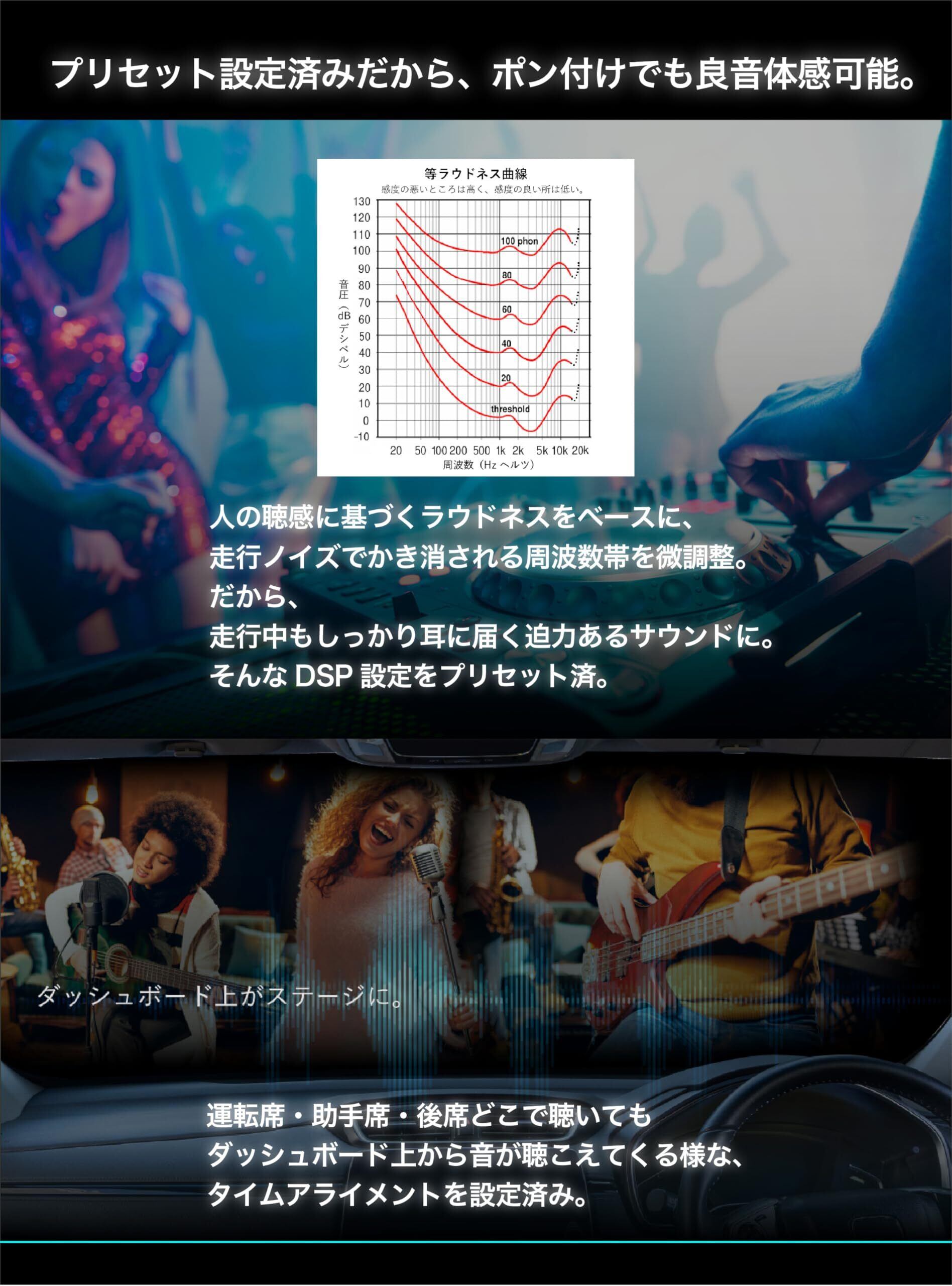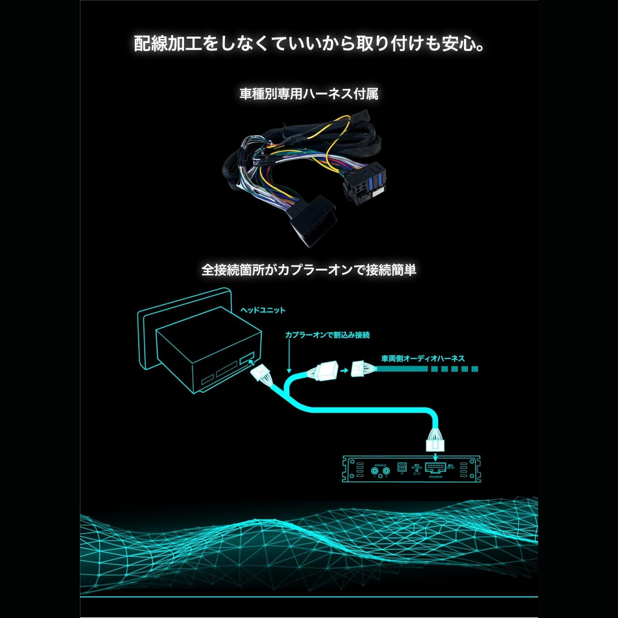 【純正オーディオを高音質にアップグレード】純正ナビやオーディオシステムをそのまま活用しつつ、迫力あるサウンドを実現するDSP内蔵アンプ。車両の配線加工不要で簡単取付が可能です。