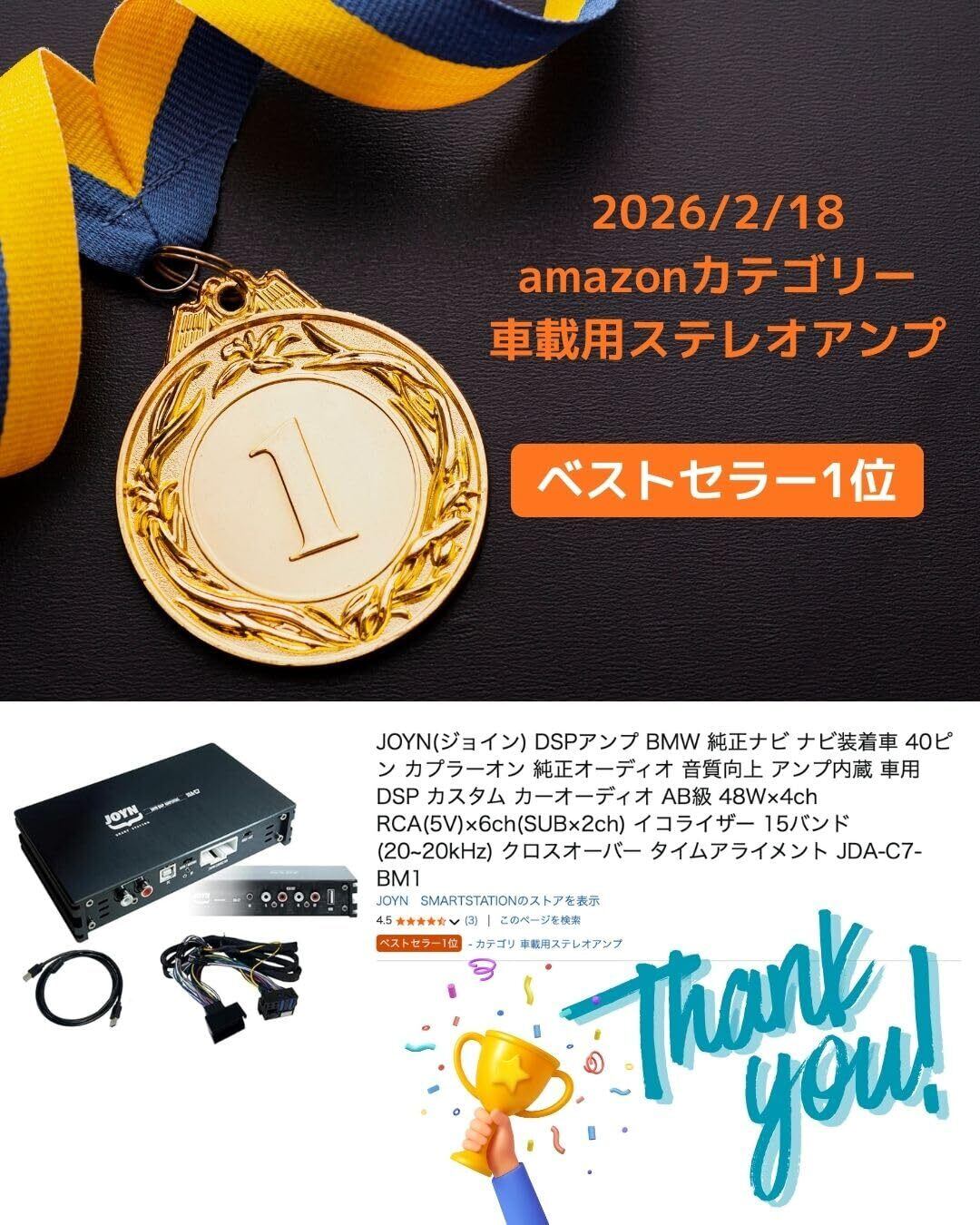 JOYN(ジョイン) DSPアンプ BMW 純正ナビ ナビ装着車 40ピン カプラーオン 純正オーディオ 音質向上 アンプ内蔵 車用DSP カスタム カーオーディオ AB級 48W×4ch RCA(5V)×6ch(SUB×2ch) イコライザー 15バンド(20~20kHz) クロスオーバー タイムアライメント JDA-C7-BM1