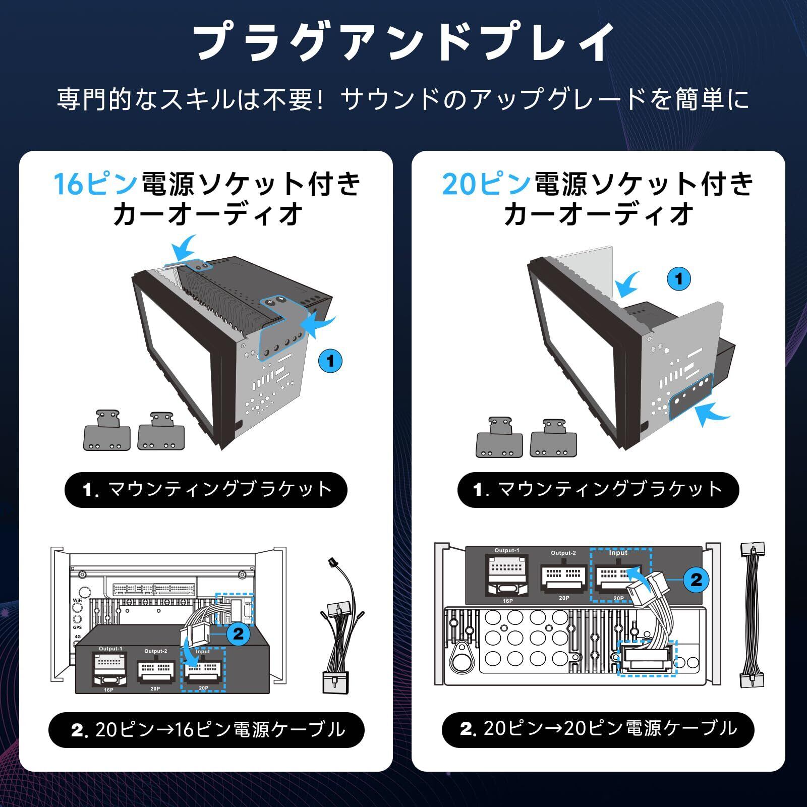 プラグアンドプレイ取付け: 当社専用ハーネスを接続するだけで簡単に取付けでき、専門的なスキルは不要。標準的なカーオーディオ配線と同様の手順で、オーディオのアップグレードを簡素化し、取付けの時間を短縮します