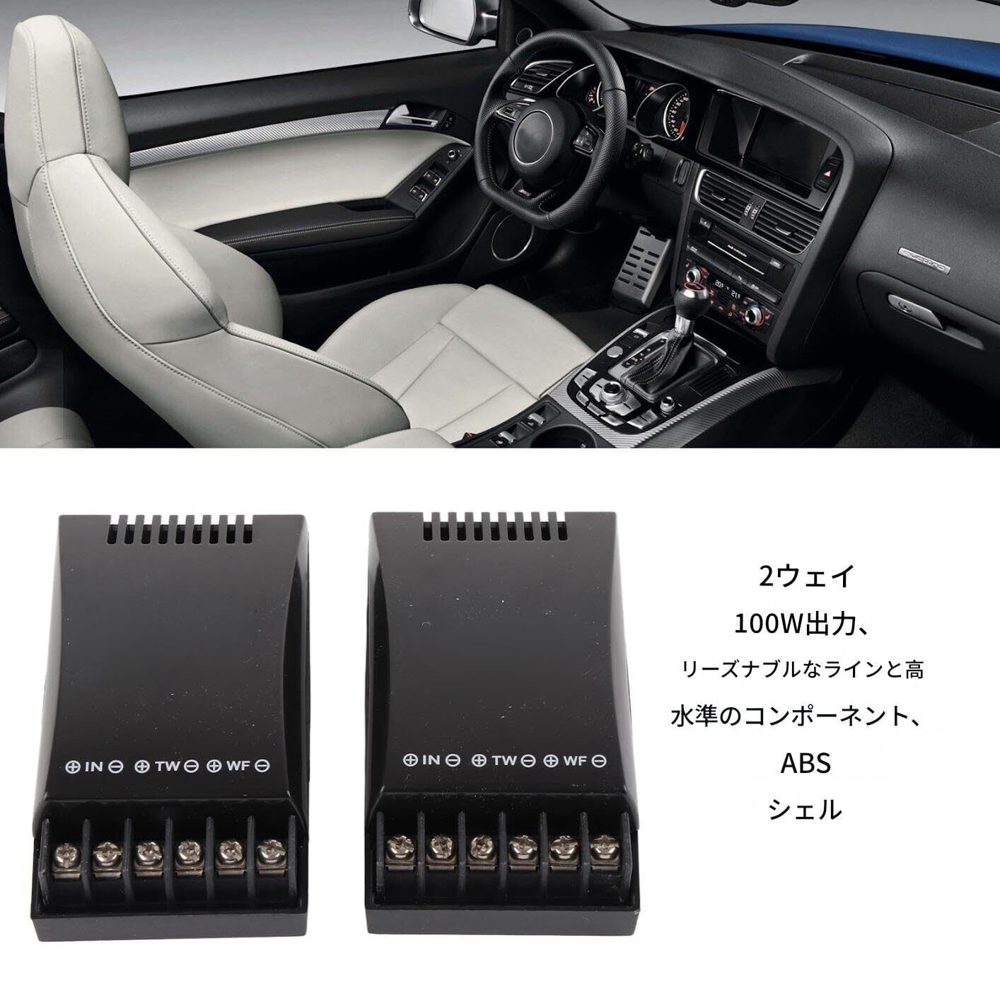 2個セット 車用オーディオクロスオーバー カー スピーカー クロスオーバー 2way 100W出力 12V ABSシェル 耐久性 ブラック