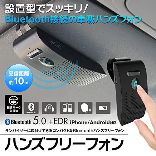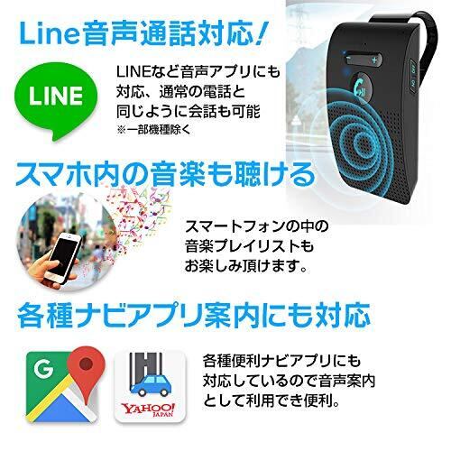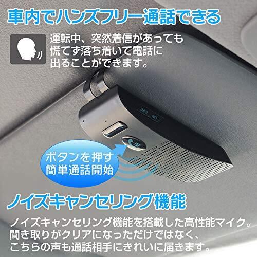 ハンズフリー ワイヤレス スピーカー Bluetooth 車載 通話キット 日本語アナウンス ノイズキャンセリング 2台待ち受け 電話 音楽再生 サンバイザー取付 車 自動電源 スマートフォン 技術適合認証済み ライン通話