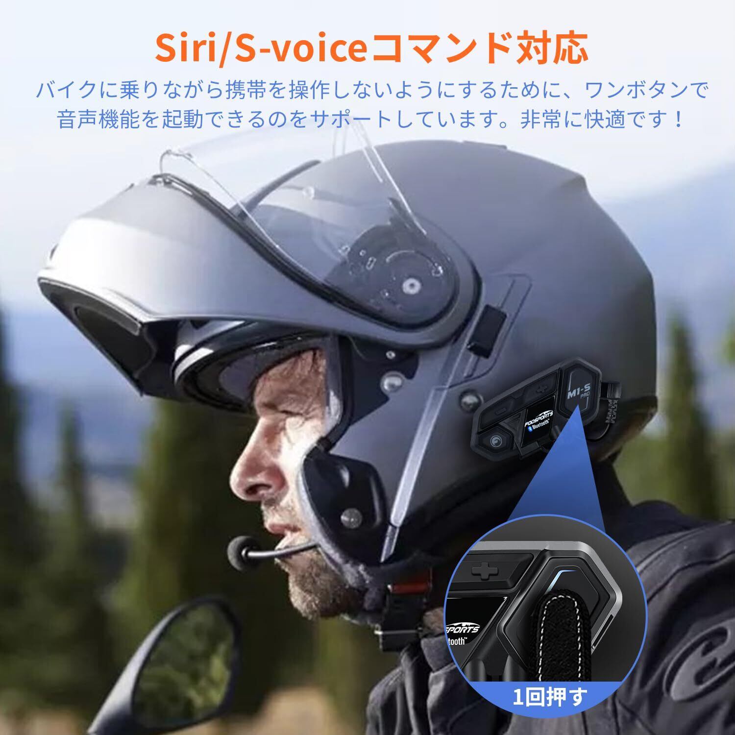 FODSPORTS バイク インカム M1-S Pro インカム 8人同時通話 通信自動復帰 音楽共有 アプリ対応 ワンタッチ全部接続 異なるデバイスと接続可能 連続使用20時間 CVC&ENCノイズキャンセリング 強い互換性 Bluetooth ヘルメットヘッドセット バイク用通信機器 防水 HI-FI音質 Siri対応 付属品全部同梱 無線機 日本語音声案内&説明書 技適認証済み(1台セット)