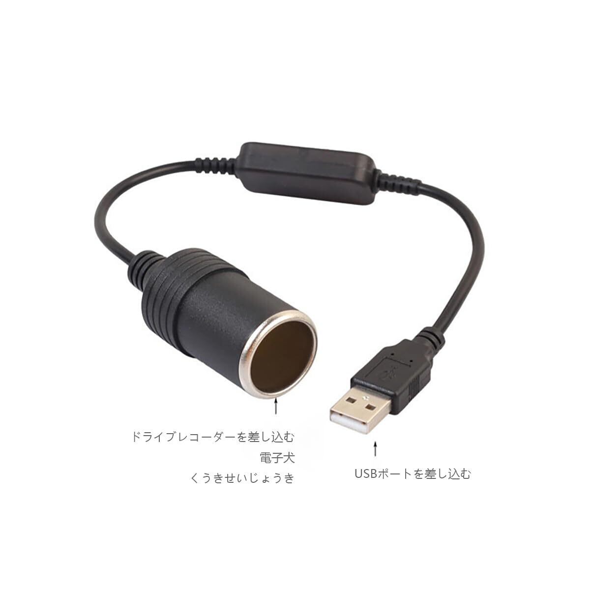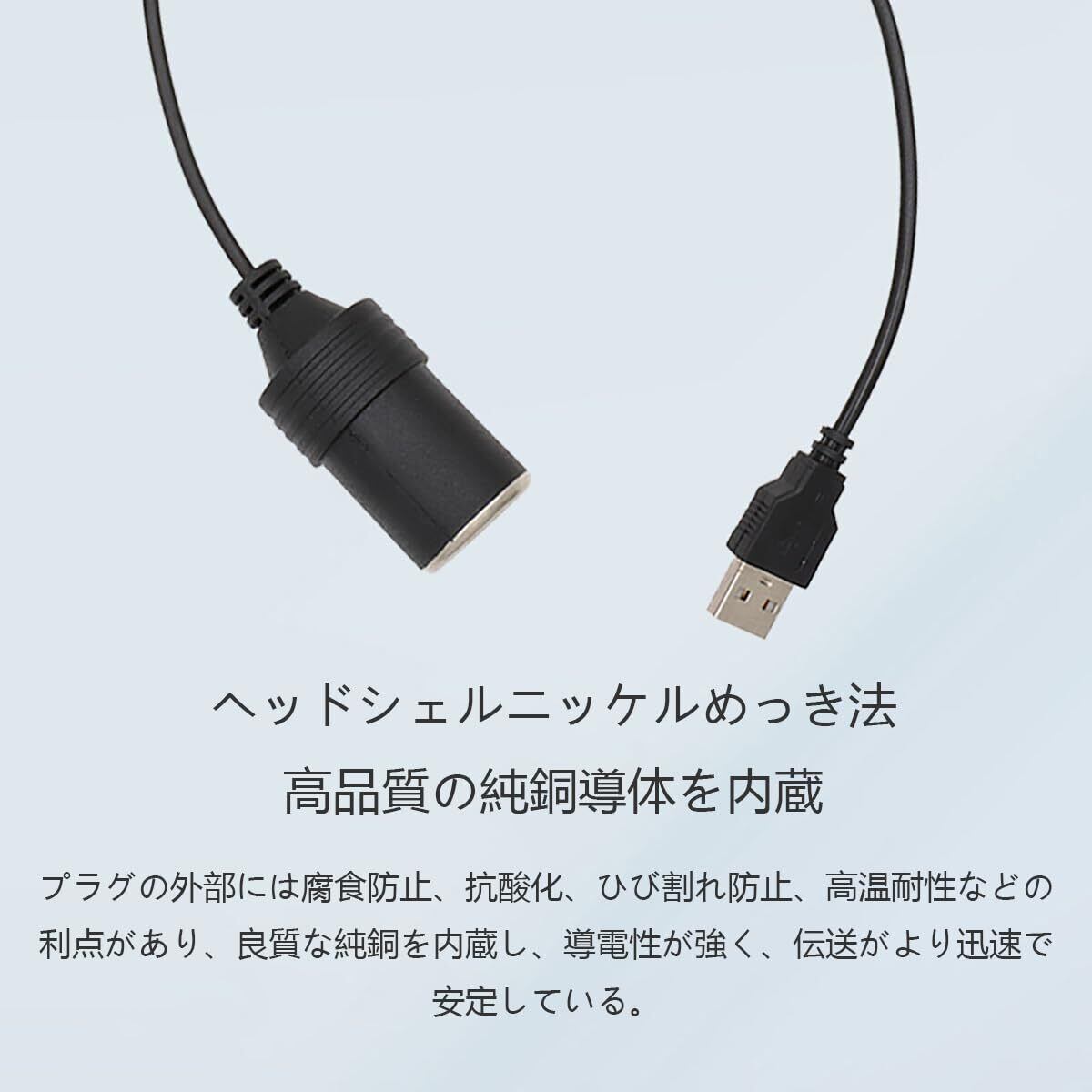 (ALLVD)車載シガレットライターソケット USBポート12V 車用 メス変換アダプタコード usb シガーソケット 変換 車載充電器 車載用品対応 (1個)
