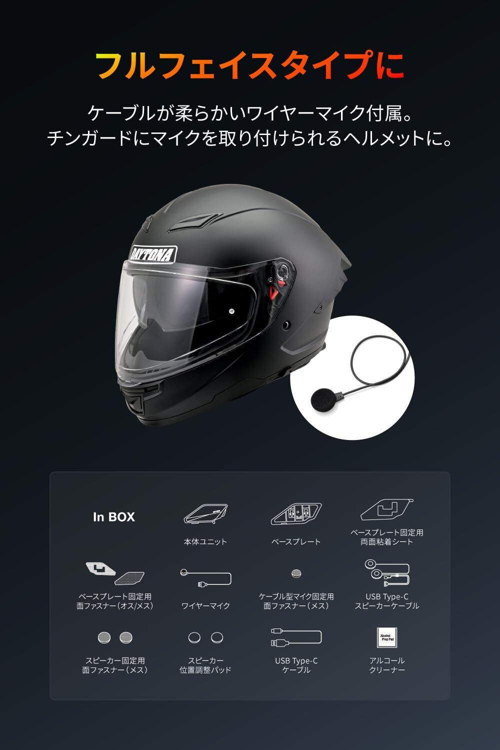 デイトナ(Daytona) バイク インカム 8人通話 低遅延 防水 通信距離1500m フルフェイス用 DT-02(DTオーツー) ワイヤーマイクタイプ 1台 25031