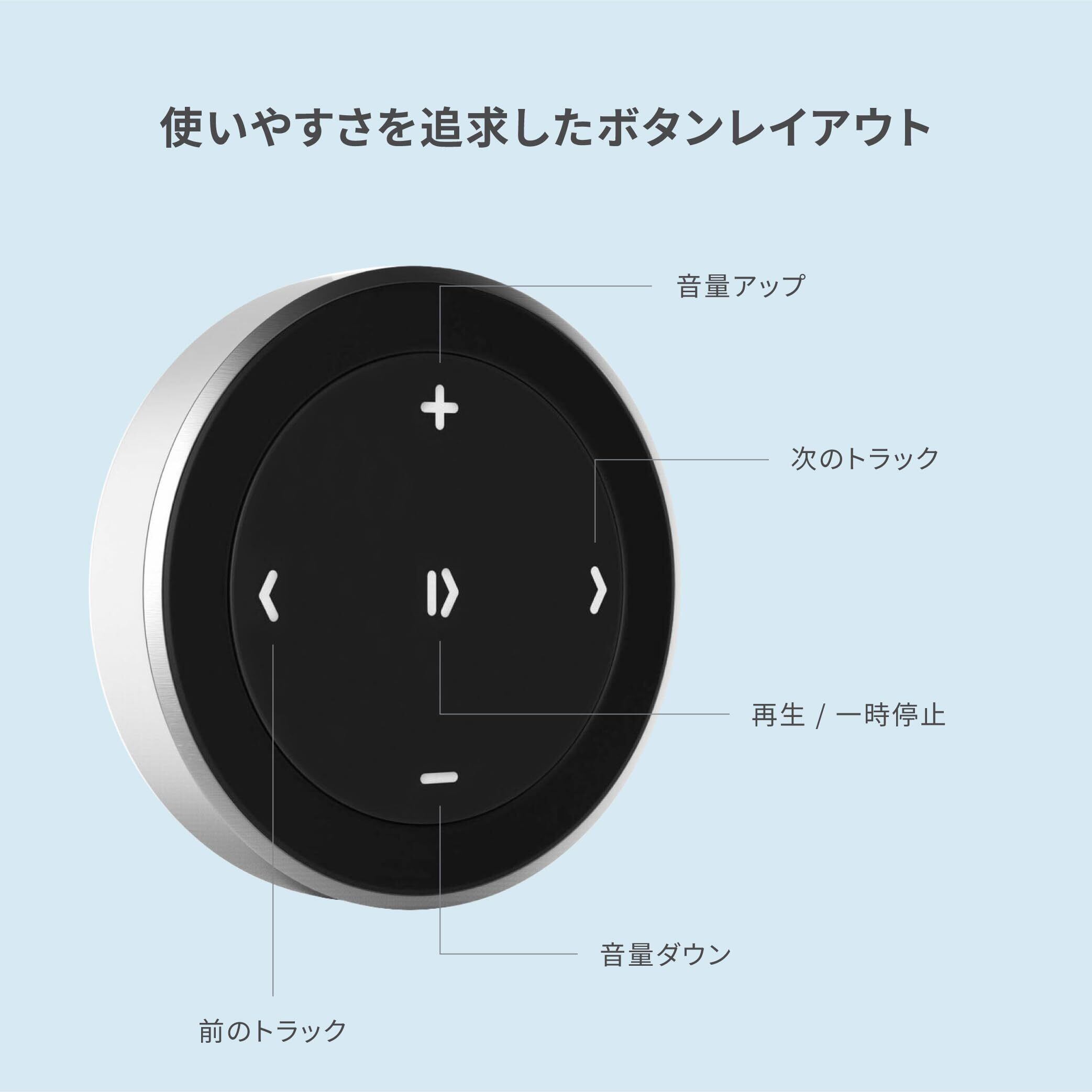 多彩な取り付けオプション - 付属のクリップで、Bluetoothメディアボタンをハンドル、自転車のハンドルバー、デスクなどに簡単に取り付けることができます。持ち運びや日常使用に配慮したコンパクトな設計で、邪魔にならずしっかりと固定されます。