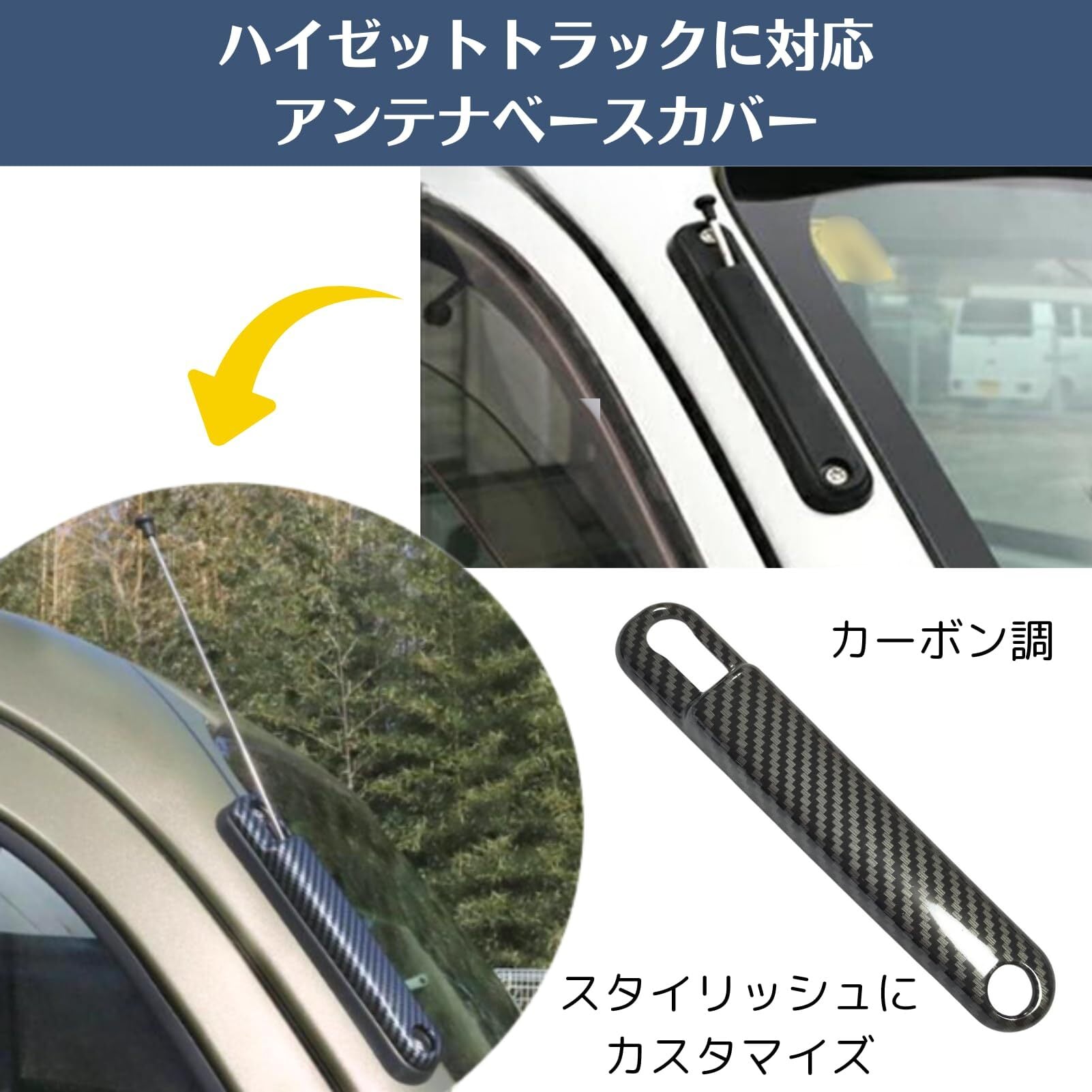 【高いデザイン性】純正アンテナベースに被せるだけで、簡単にドレスアップが可能です。スポーティーなカーボン調デザインが、車体の外観をスタイリッシュに演出します。