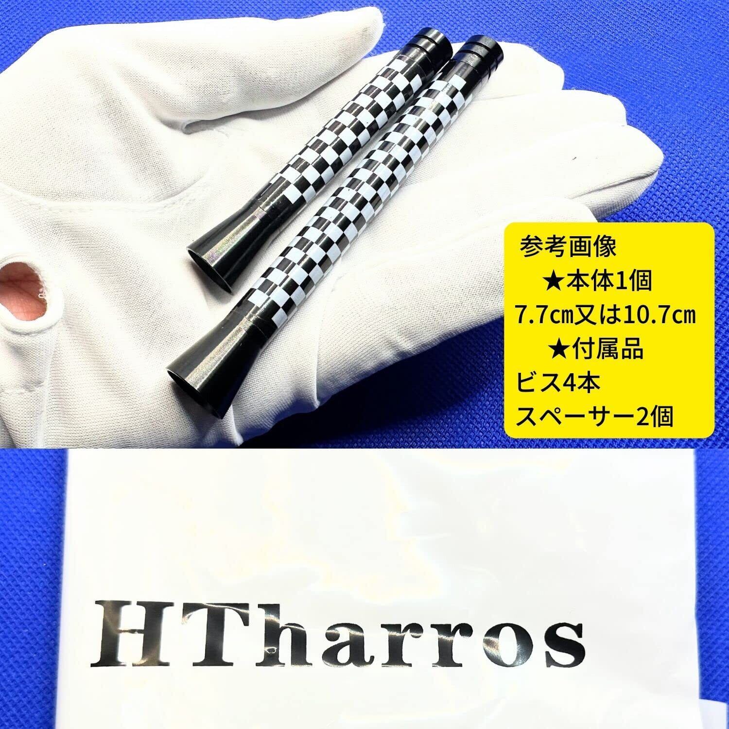 HTharros ミニクーパー アンテナ MINI BMW 汎用 ヘリカル ショート アンテナ FM AⅯ ラジオ 車用 チェッカーフラッグ 10.7cm