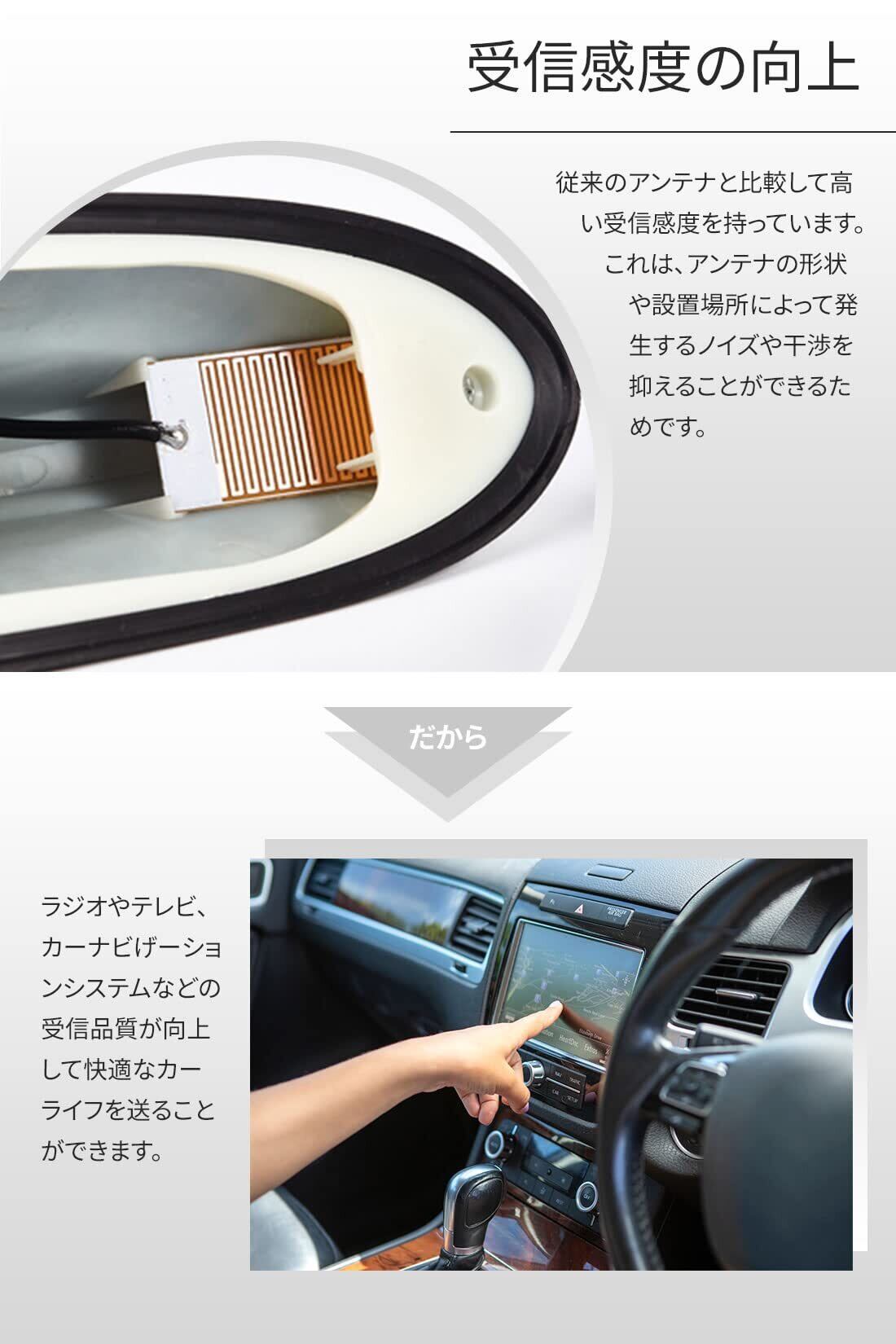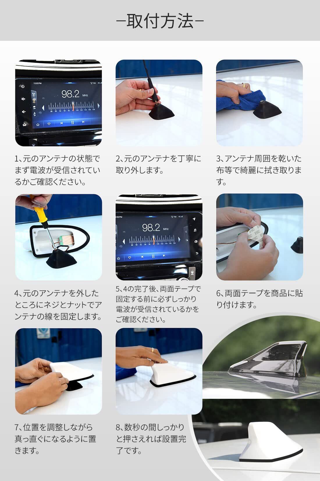 取り付け簡単で交換ラクラク:ドルフィンアンテナは、従来のアンテナと交換し、両面テープで簡単に取り付けするだけの簡単取付で交換がラクラクです。また、他社品とは異なり底にゴムが付いているので、車とのフィット感がよく、水などの侵入を防ぎます。さらに、アンテナと接続する配線部は導線をそのままはなく、安全面を考えしっかり絶縁体をつけております。※汎用品となりますので、個別の車種の取付に関するのサポートは行っておりません。恐れ入りますが、ご注文前に寸法や形状をよくご確認いただきご購入をお願いいたします。付属の両面テープは仮止め用となります。