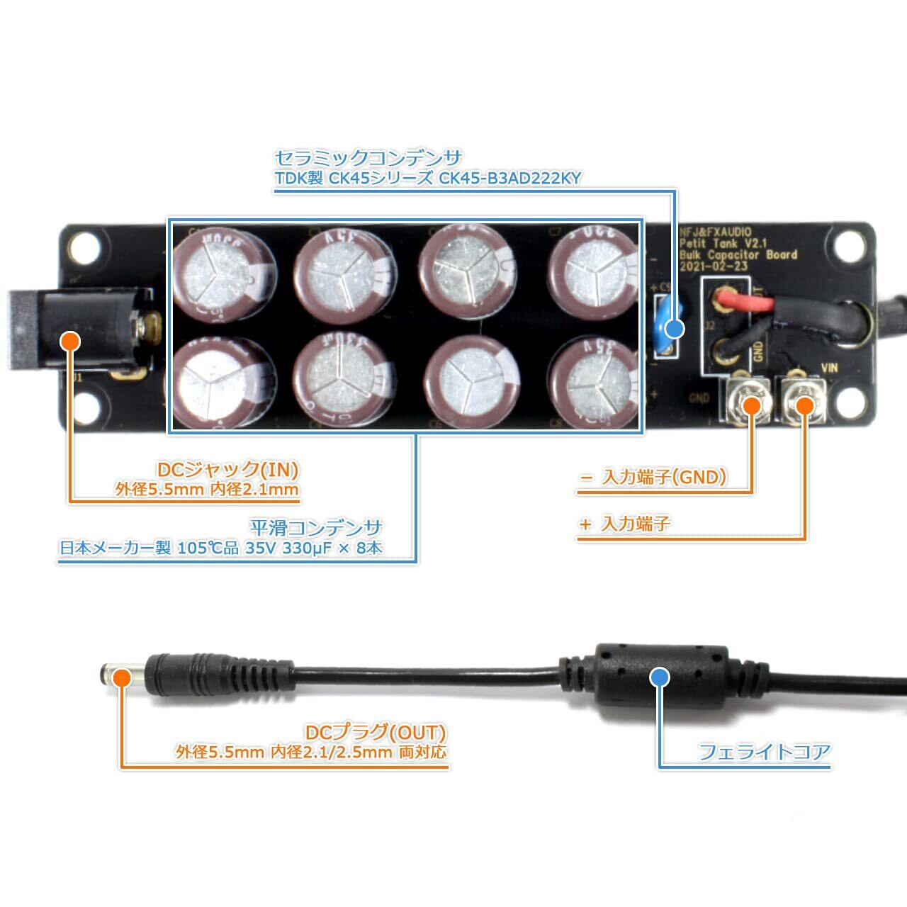 FX-AUDIO- Petit Tank DC電源ノイズクリーナー・バルクキャパシタ 延長ケーブル型 出力プラグ外径5.5mm 内径2.1/2.5mm両対応