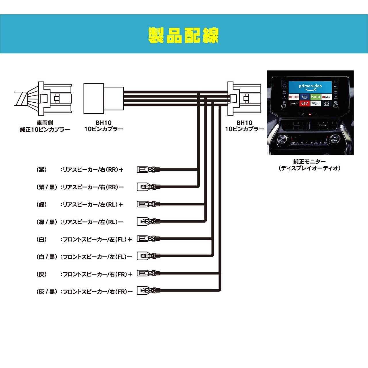 スピーカー出力取り出しケーブル (BH10 トヨタディスプレイオーディオ用)