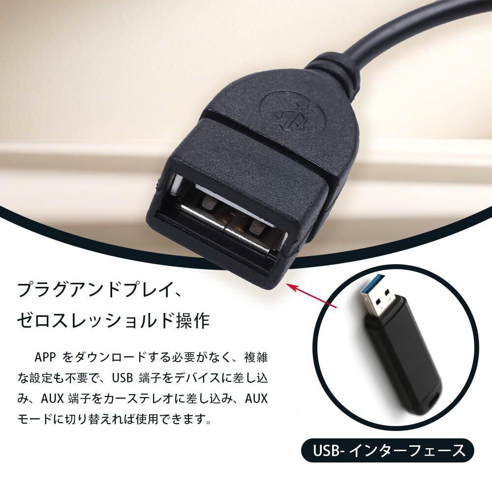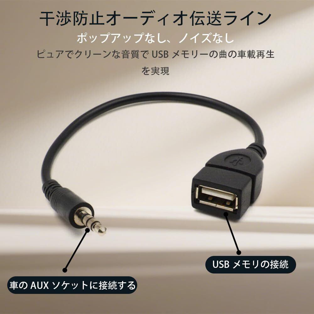 【USBから3.5mm変換、幅広い互換性】:スマートフォンやUSBメモリなどのUSBデバイスと車の3.5mm AUX端子接続をサポート。国産車・輸入車問わず人気車種に対応し、頻繁な変換ケーブル交換が不要。