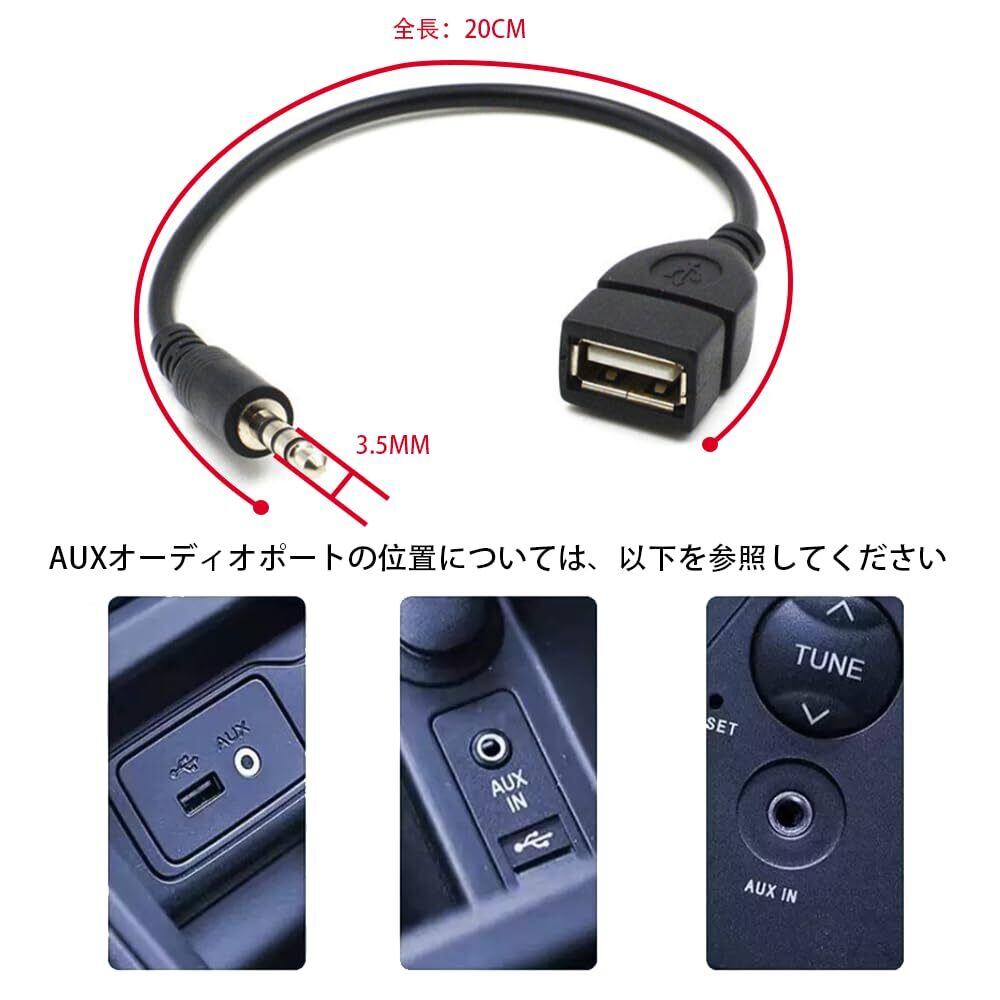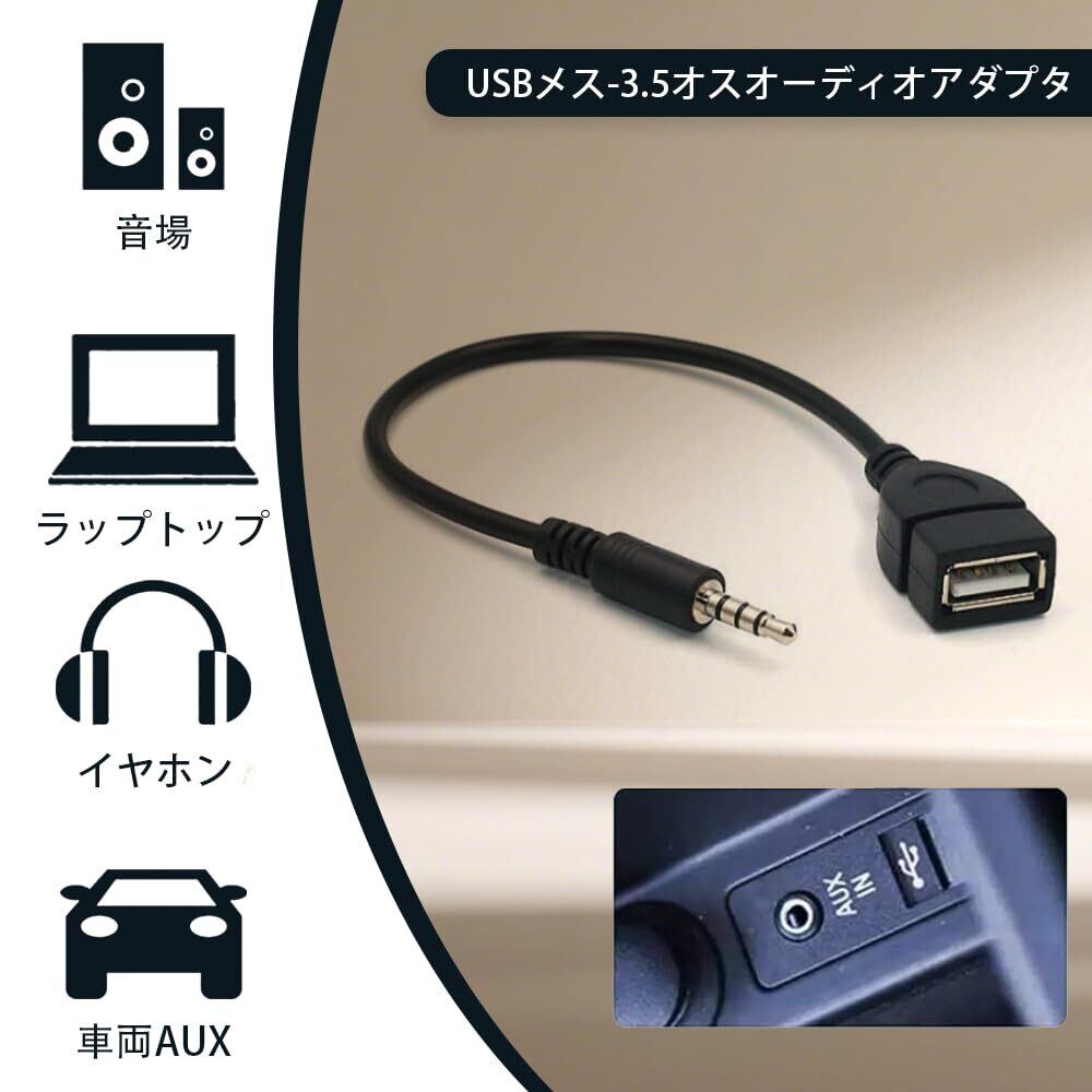 USB 2.0メス→AUX 3.5mmオス 変換ケーブル 20cm|車載オーディオ対応 ステレオ音声 ブラック