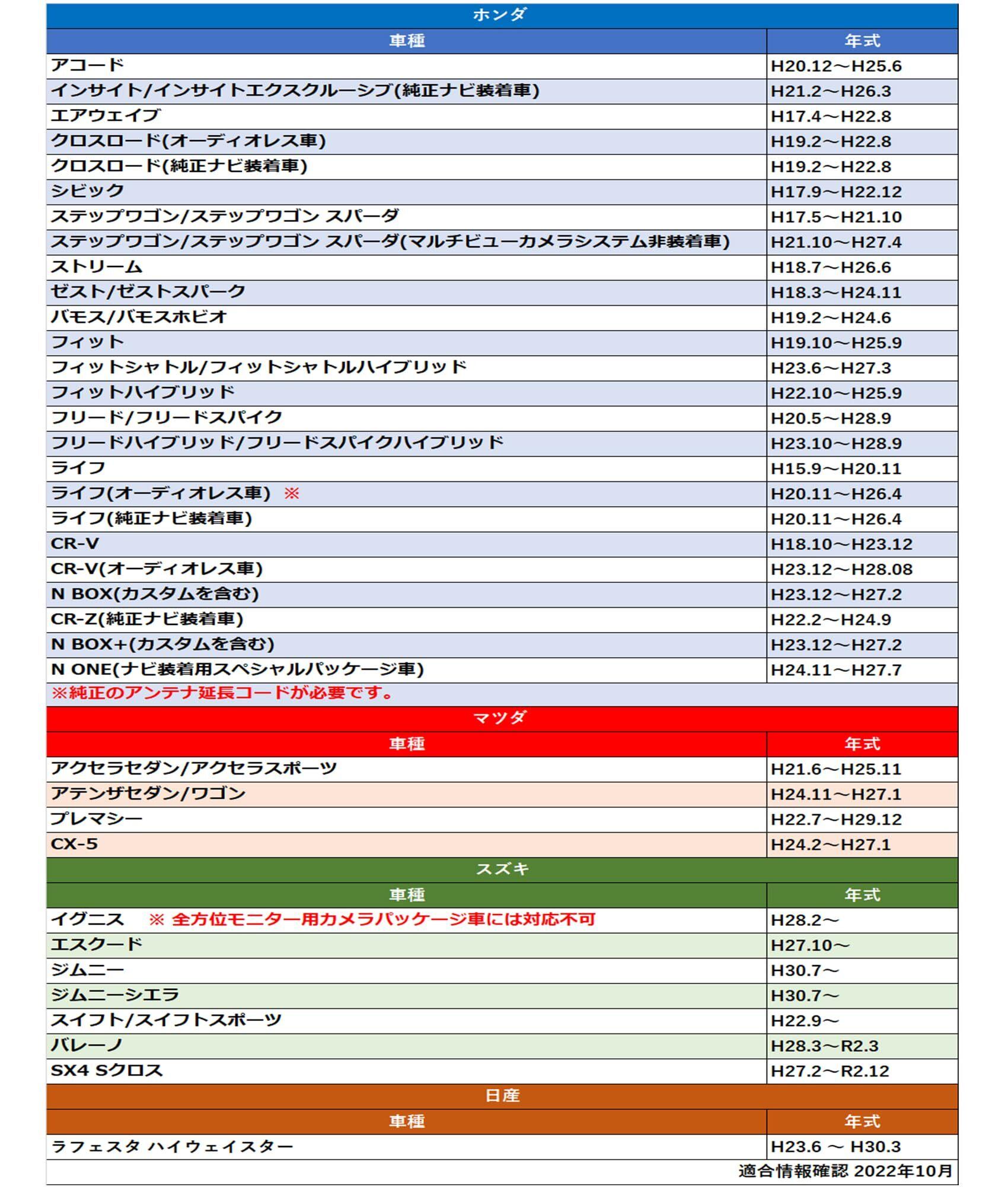 2004年式以降の車種でも アンテナプラグ形状により適合が異なる場合がございますので必ず現車確認のうえ、お買い求めください。