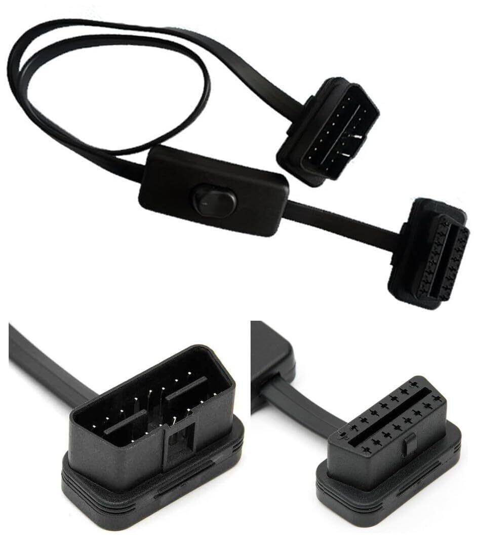 OBD2 スイッチ付き延長コード 16ピン 長さ60cm 車両診断 超薄型 取り回しを簡単に ケーブルの延長/電源の追加や切り替え フラット型 アダプタ コネクタ ブラック