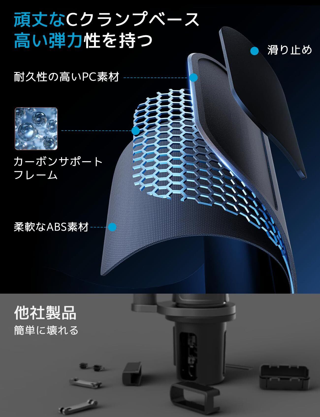 【対応デバイス】このタブレットクランプは、4.7インチから13インチのスマートフォンやタブレットに対応しています。対応機種には、iPad Pro 13/12.9/11/10.5/9.7、iPad Air 5/4/3/2、iPad Mini 6/5/4/3/2/1、Galaxy Tab、Galaxy Z Fold 4/3、Xiaomi、iPhone 16/Pro/Maxなどがあります。