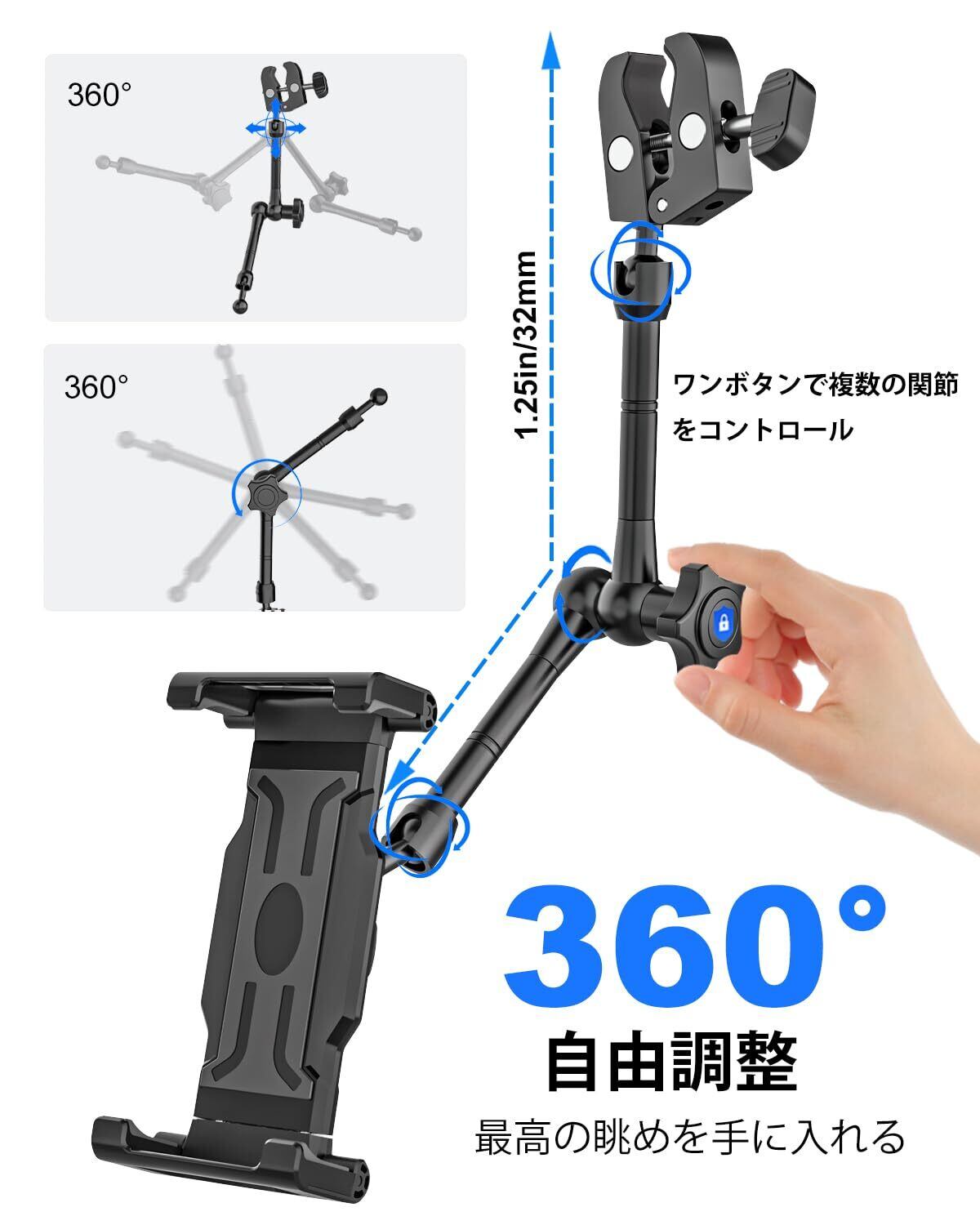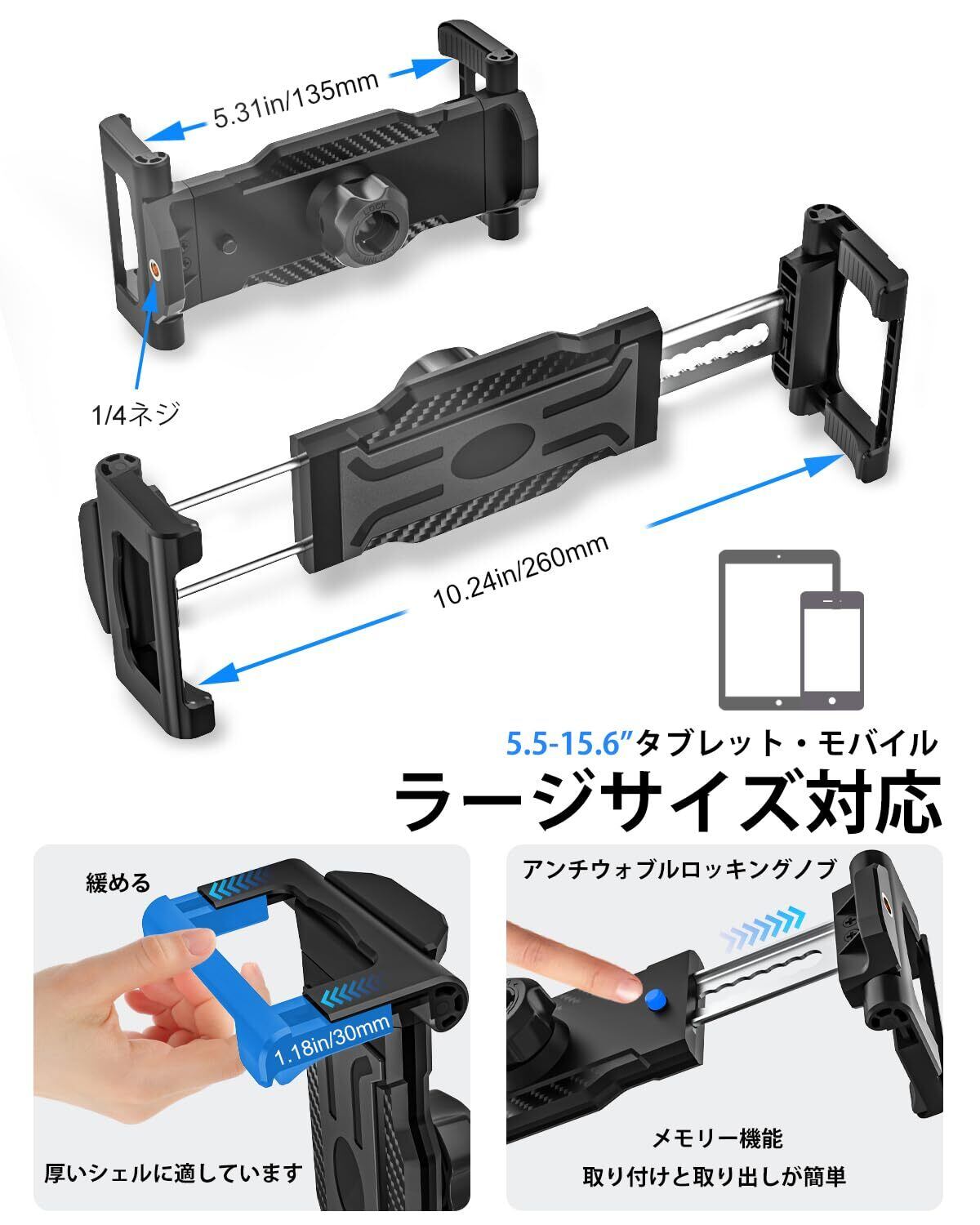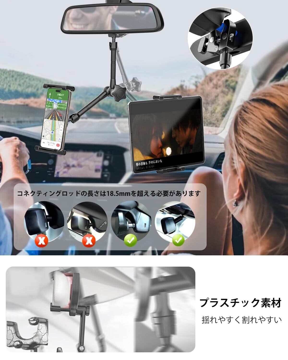 タブレットホルダー 車 タブレットホルダー 車 バックミラー用 リアビュー ミラー 携帯電話ホルダー 車用 ipad 車載ホルダー タブレット スタンド 車 ワンクリック調整 360度回転 金属マジックアーム ユニバーサル金属クリップ 日本語説明書5.5-15.6インチデバイス iPad Pro 12.9 iPad Air iphone16 など互換性がある