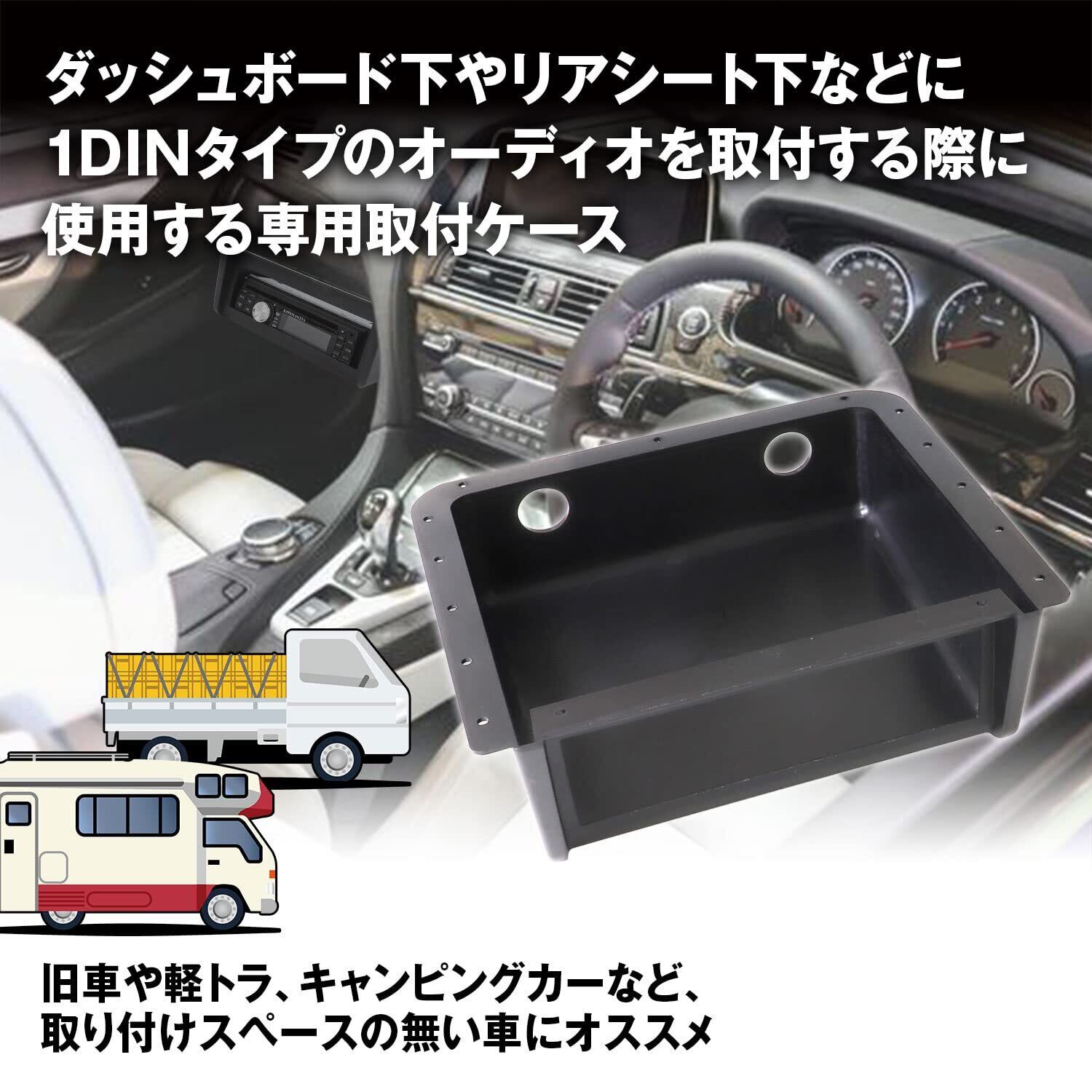 1DIN収納ケースと取り付けるための金具ブラケットをセットしました。ダッシュボード下への吊り下げやオンダッシュ、リアシート下などに1DINサイズのオーディオを取付する際に活躍します。