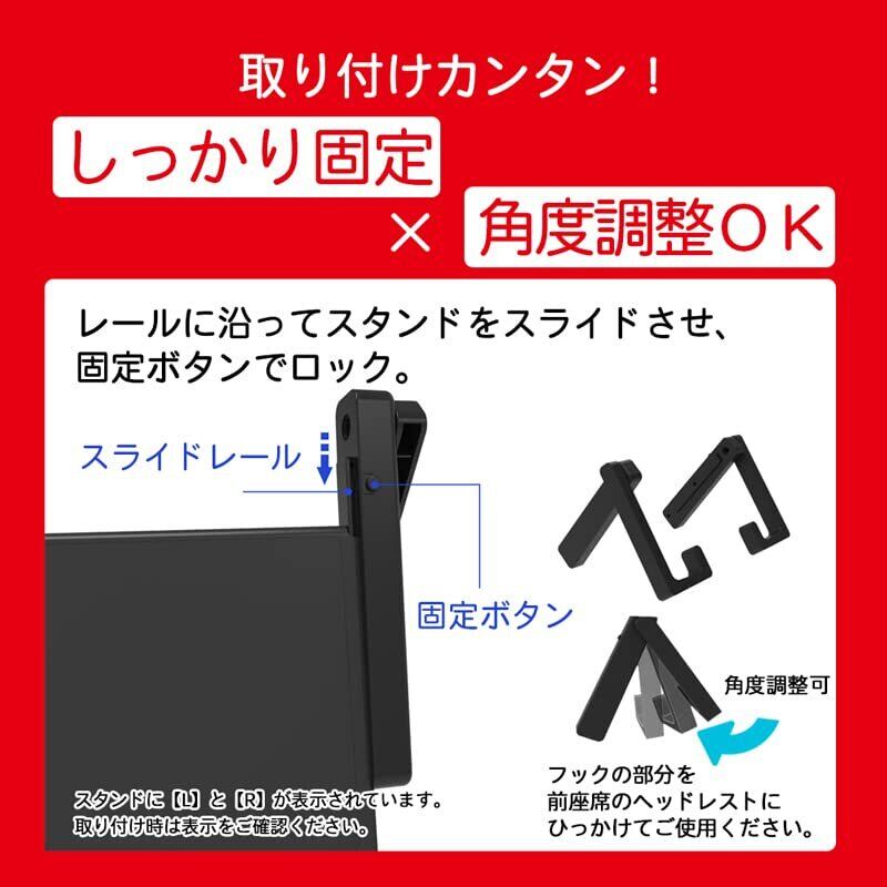 任天堂スイッチを自動車の後部座席で、ご自宅で楽しむ車載ホルダー兼スタンドです。 ●簡単取り付けで長時間のドライブにも! ●折りたたみ可能なので持ち運びも便利 ●スライド&固定ボタンですべり落ちなし ※スタンドに「L」「R」表示がございますので、取り付け時にご注意ください。 ●サイズ:(縦)211mm(横)50mm(厚み)14mm ●素材:ABS ●カラー:ブラック