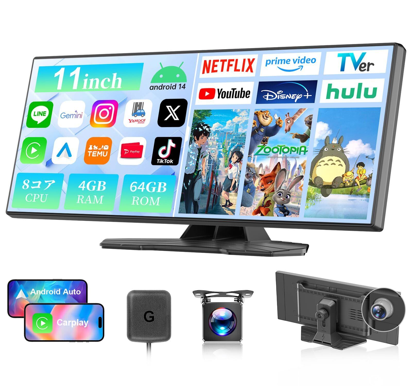 【Android 15 バージョン搭載&高性能8コアCPU】 本製品はAndroid 15最 新オペレーティングシステムを搭載したディスプレイオーディオで、セキュリティーアップデートとシステム安定性を両立しています。●高性能8コアCPUと4GB+64GBのメモリーセットにより、複数の重いアプリを同時に起動しても、ラグなくサクサクと動作します。ナビゲーション中の音楽再生はもちろん、停車時に動画視聴やオンラインショッピングまで可能と、車内をスマートスペースに変えます。従来機よりマルチタスク性能が大幅アップ,ナビゲーションを実行しながら音楽を再生するなど、車内でもタブレット並みの快適な操作感を実現します。●Google Play対応のポータブルナビ機能|車内エンタメは无限大。Google Playストアに完全対応しており、AIツール、SNSアプリ、音楽・動画配信サービスなど、お好きなアプリを自由にダウンロードできます。YouTube、Netflix、Spotifyなど人気アプリはプリインストール済みで、ドライブの合間に即座にエンタメを楽しめます。●タッチパネルの直感的な操作で、高齢の方でも簡単に使いこなせ、車内のレジャー時間を大幅に豊かにします。
