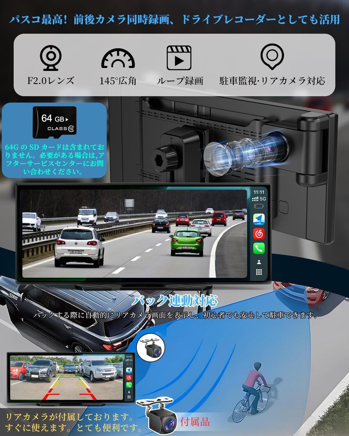 【業界初!オープン Android システム × 前後 2 カメラ DR 一体化】他製品にはない万能機能で性价比最強!一般的なアンドロイドナビでは「ナビ機能」と「ドライブレコーダー」は別々に購入・設置が必要ですが、本製品は業界唯一の「オープン Android システム」と「前後 2 カメラドライブレコーダー」を完全一体化! ● オープン Android システム:自由なアプリ活用で多様なニーズに応える制限のないオープンシステムなので、Google マップ、Yahoo! ナビなどの地図アプリはもちろん、YouTube、Spotify、Netflix などのエンタメアプリ、甚至は業務用のツールアプリまで自由にダウンロード・使用可能! ● 前後 2 カメラドライブレコーダー:他製品にはない全方位安全!前方・後方の両方を同時に録画可能な 2 カメラ搭載で、衝突事故や接触事故の際には明確な証拠映像を自動で保存! 夜間や悪天候でも高画質録画に対応し、車両のボディを全方位から守ります。● 性价比最強:1 台で 3 つの役割を兼ねる経済的選択!「アンドロイドナビ + 前後 DR + 多機能情報端末」の 3 つの役割を 1 台で実現! ● 直感的操作 × 安定性能:運転中も安心して使用ナビ操作と DR 録画の切り替えはタップ一つで簡単、複雑な設定不要。他製品には真似できない「オープンシステムの自由さ」と「前後 DR の安全性」、そして圧倒的な性价比を実現した本製品。カーナビとドライブレコーダーを同時に購入したい方、経済的で多機能な車載機器を探している方に、绝对にお勧めの一製品です!