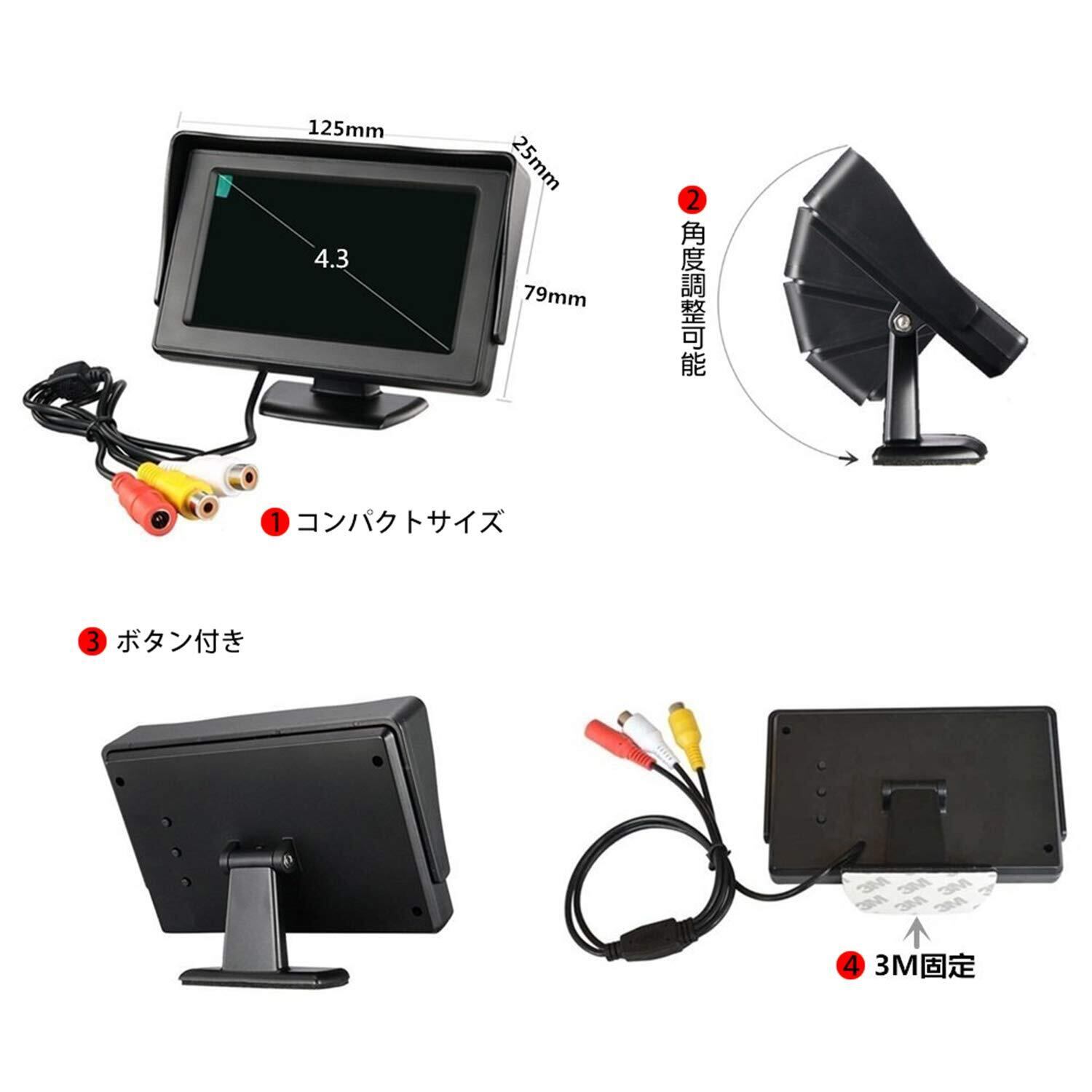 【製品特徴】①バック連動機能付き ②2系統の映像入力 ③手のひらサイズ ④モニター裏操作ボタン付き ⑤反射防止カバー取り外す可能 ⑥日本語マニュアル(電子版) ⑦安心(Antionアフターサービスカード付き)