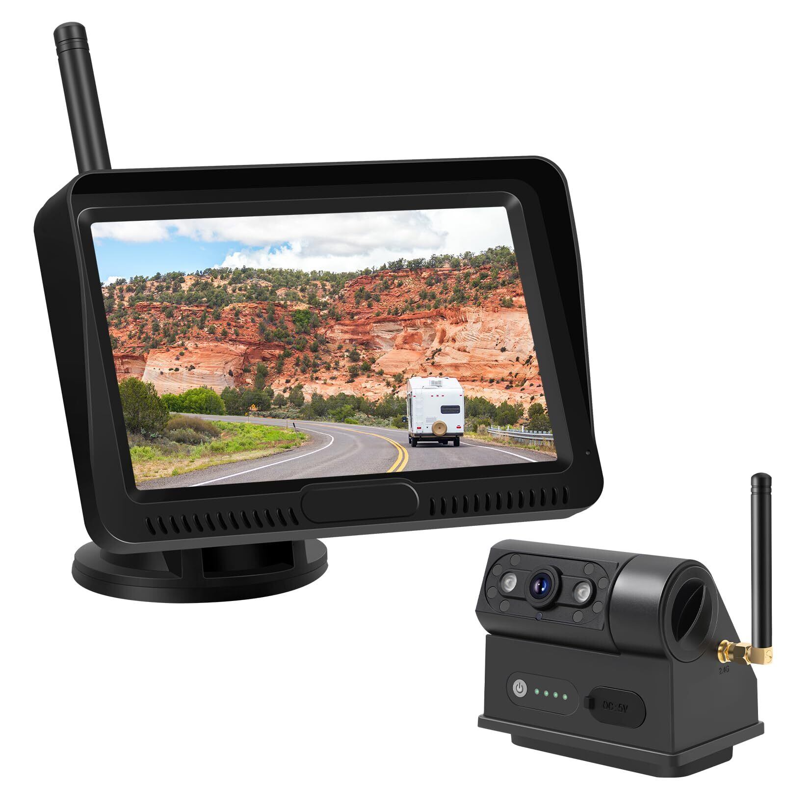 配線工事不要&取付工事不要 5インチワイヤレスバックカメラモニター24v 充電式磁石防水バックカメラ HD画質 2.4Ghzデジタル信号 赤外線暗視機能 ソーラー補助充電 2分取り付け完了 DC12v~36vまで対応 メーカー2年