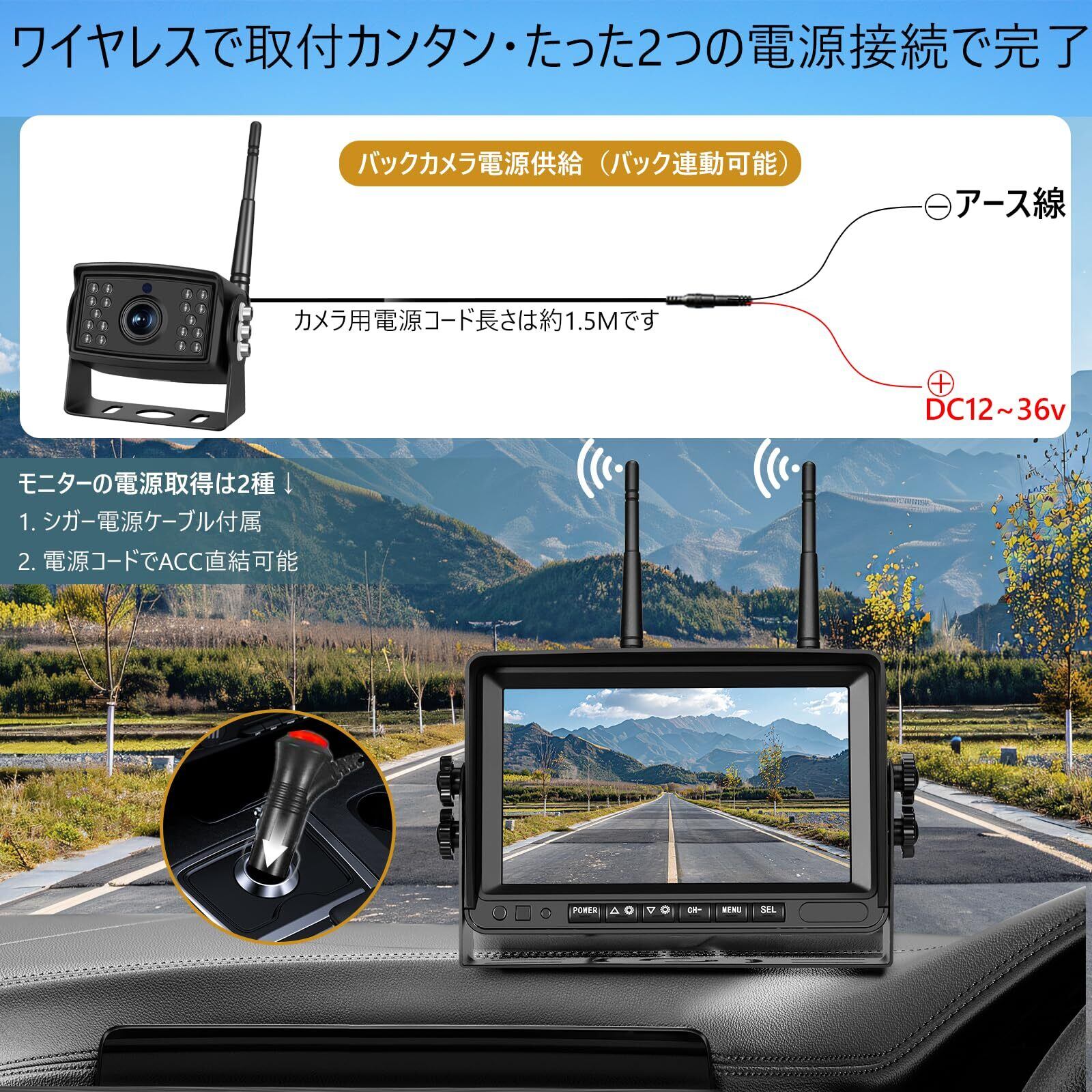 7インチワイヤレスバックカメラモニターセット 24vトラック用バックモニター BSD死角検知機能付き DIYガイドライン IPS液晶 録画機能/ループ録画 画面4分割/反転表示 防水防塵カメラ 暗視機能 DC12V-36V対応 日本語メニュー&説明書 約5倍ズーム メーカー