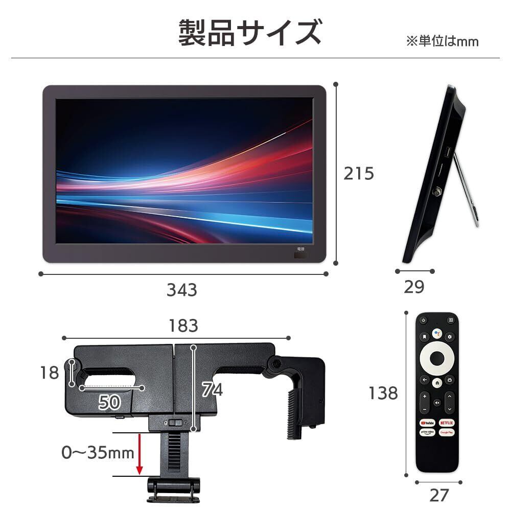 ドリームメーカー ヘッドレストモニター 14インチ Android TV フルセグテレビ内臓 スマートテレビ 後席モニター YouTube Netflix対応 音声リモコン HDMI Bluetooth 5.0 車載用 ブラケット バッテリーレス 大画面 Google認証 STV140A