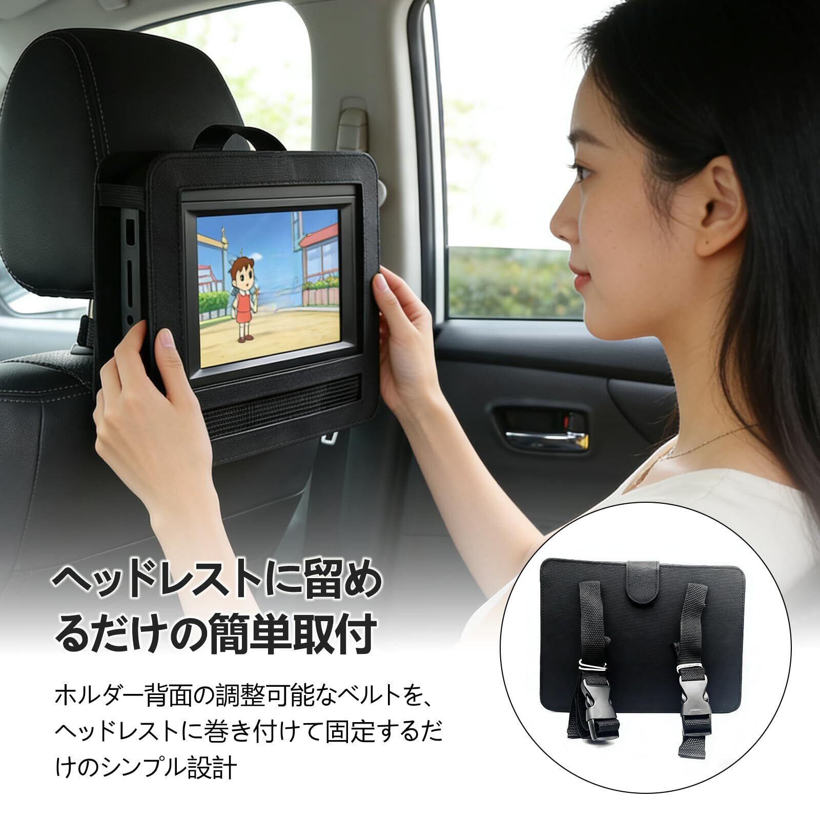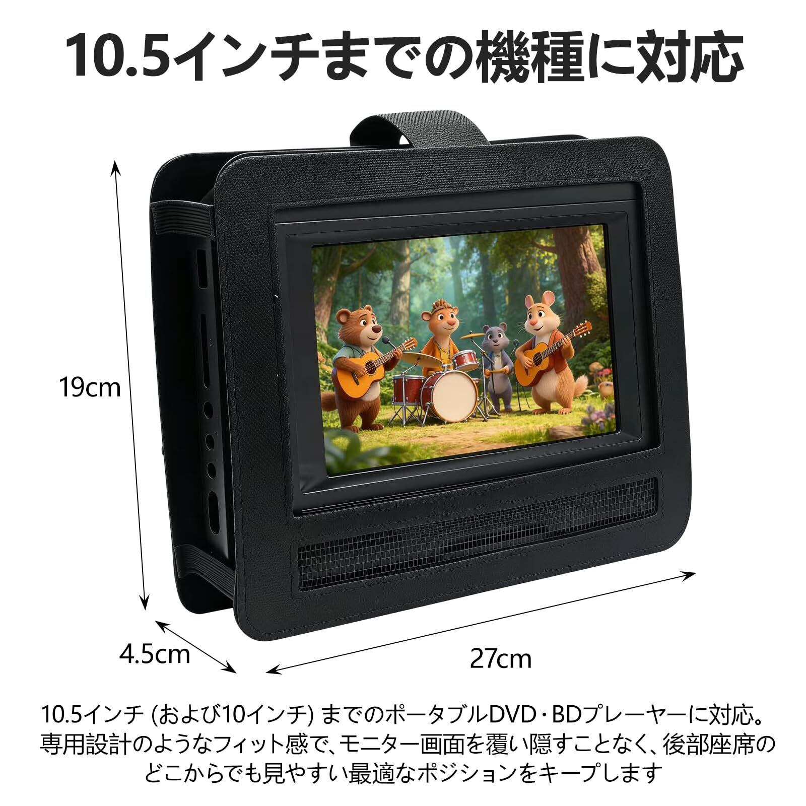 車載用 ポータブルDVDプレーヤー ホルダー 10インチ対応 ヘッドレスト 取付簡単 後部座席用 モニターホルダー 滑り止め 振動防止 ドライブ 子供 安眠 汎用