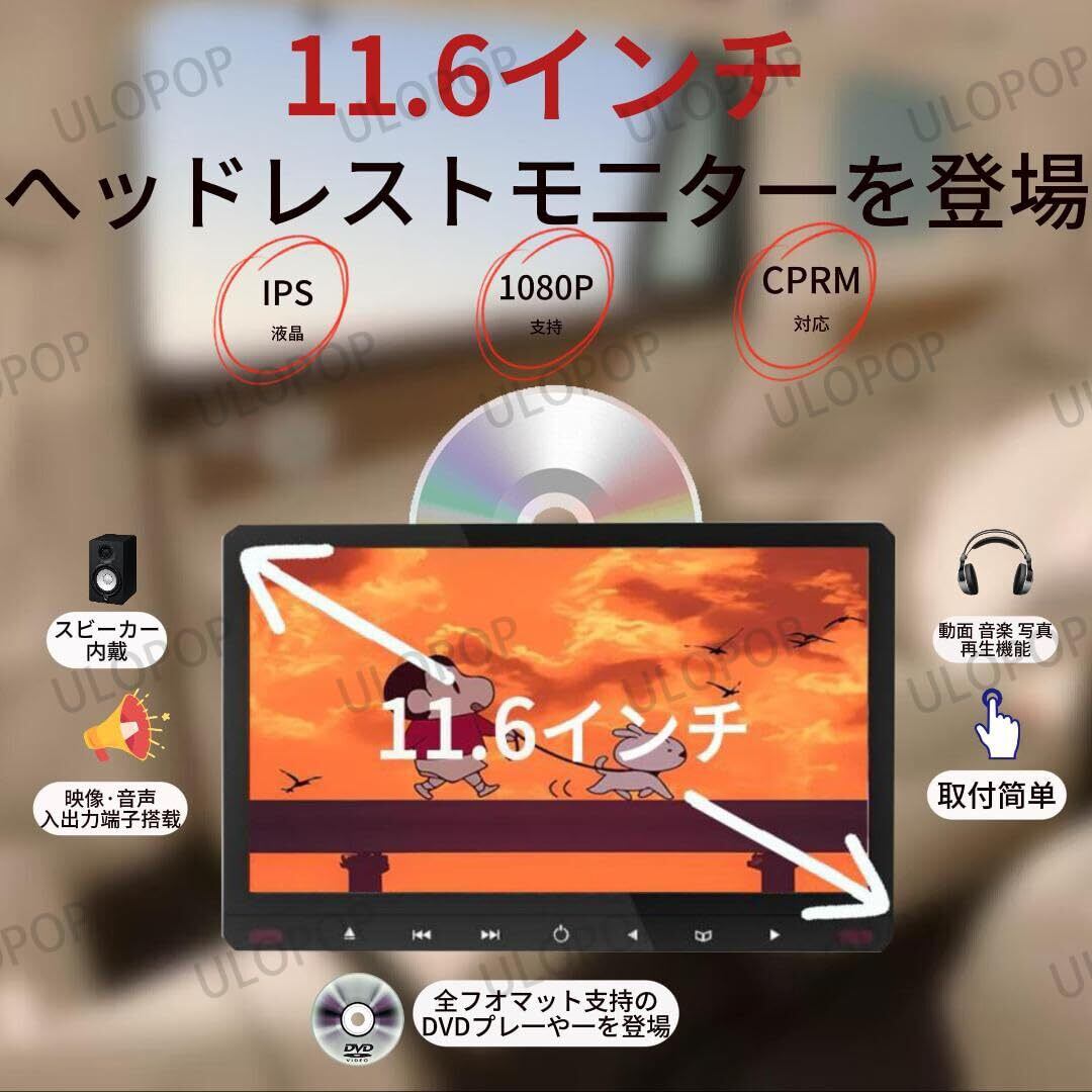11.6インチ大画面スロットインで出し入れラクラク IPS液晶搭載でヘッドレストモニター DVDプレーヤー CPRM対応 車載 全視角 1920*1080P タッチボタン USB・TF・HDMI・AV-IN・AV-OUT対応 スピーカー内蔵 マルチメディア対応可能 1080Pまで支持、様々なフォーマット対応 シガーアダプター付き 取付簡単 日本語取扱説明書付き