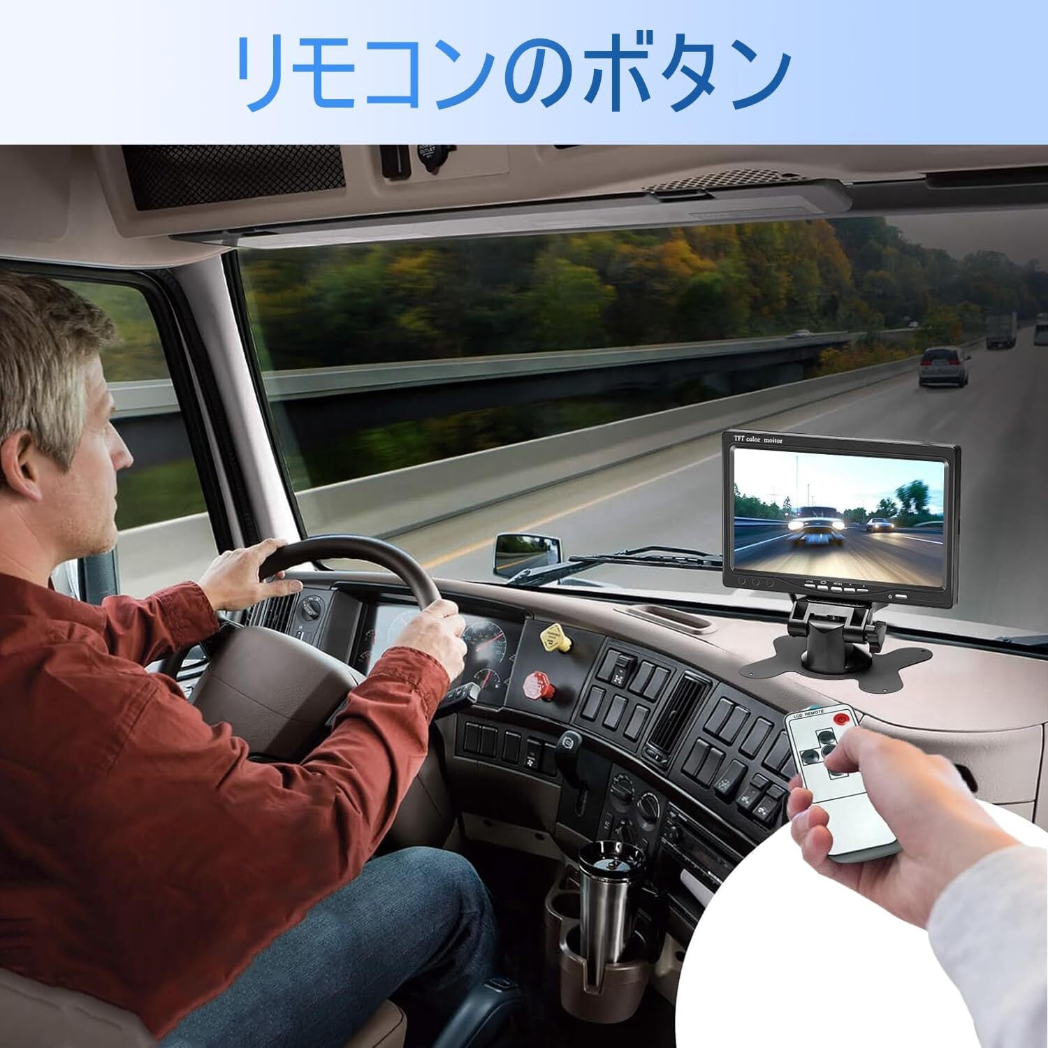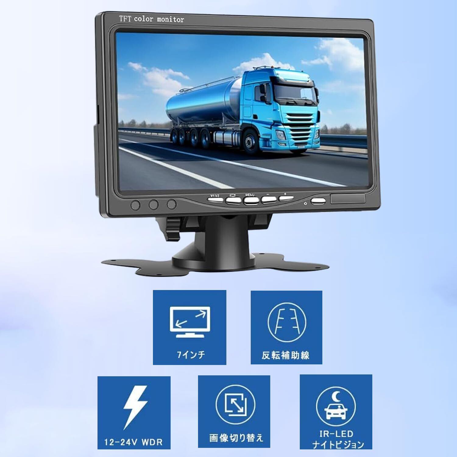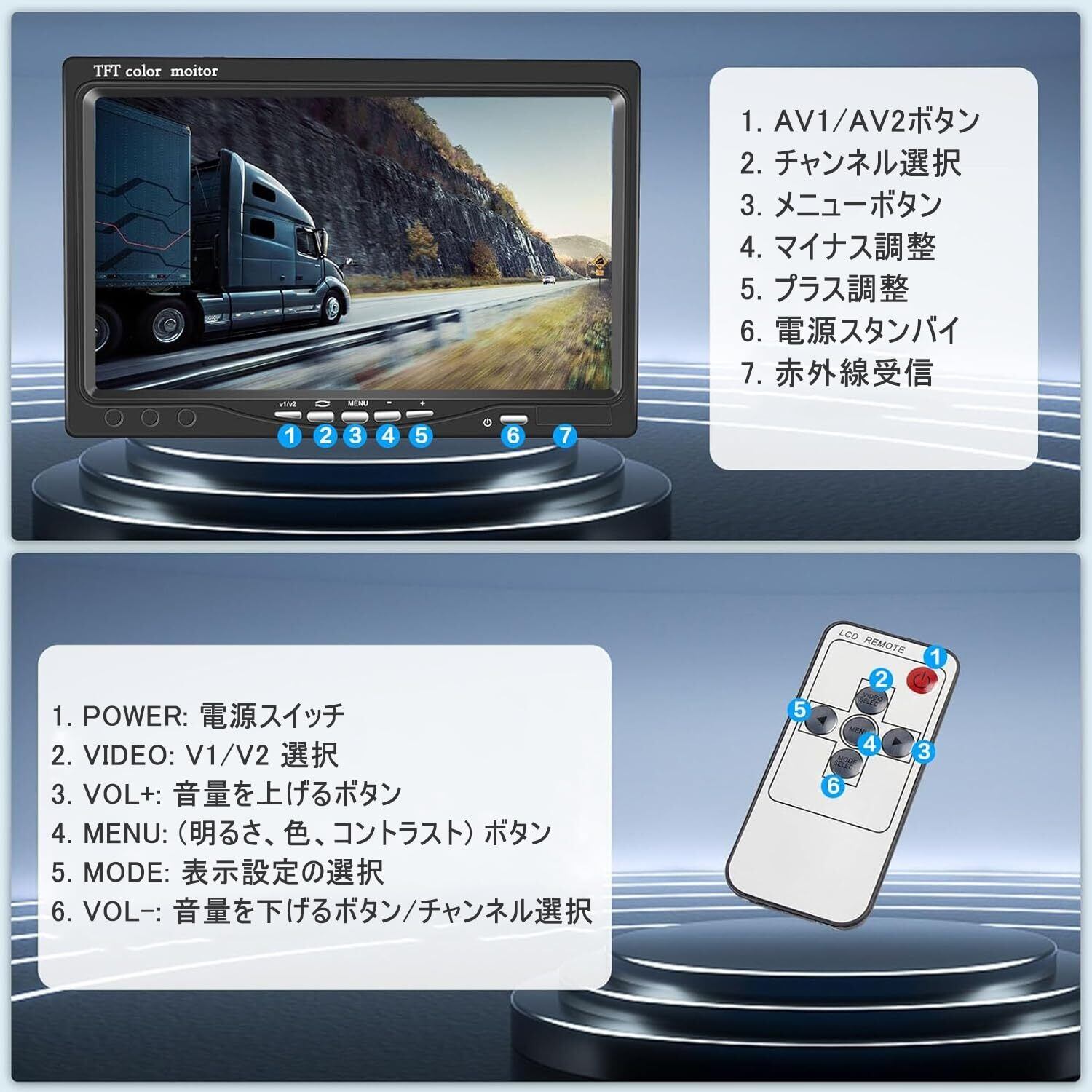7インチ車載モニター オンダッシュモニター バックライト機能 バックモニター リアディスプレイ デュアルビデオ入力 ワイヤレスリモートコントロール 12V / 24V対応 簡単にインストールでき バン トラック バスなどに適しています