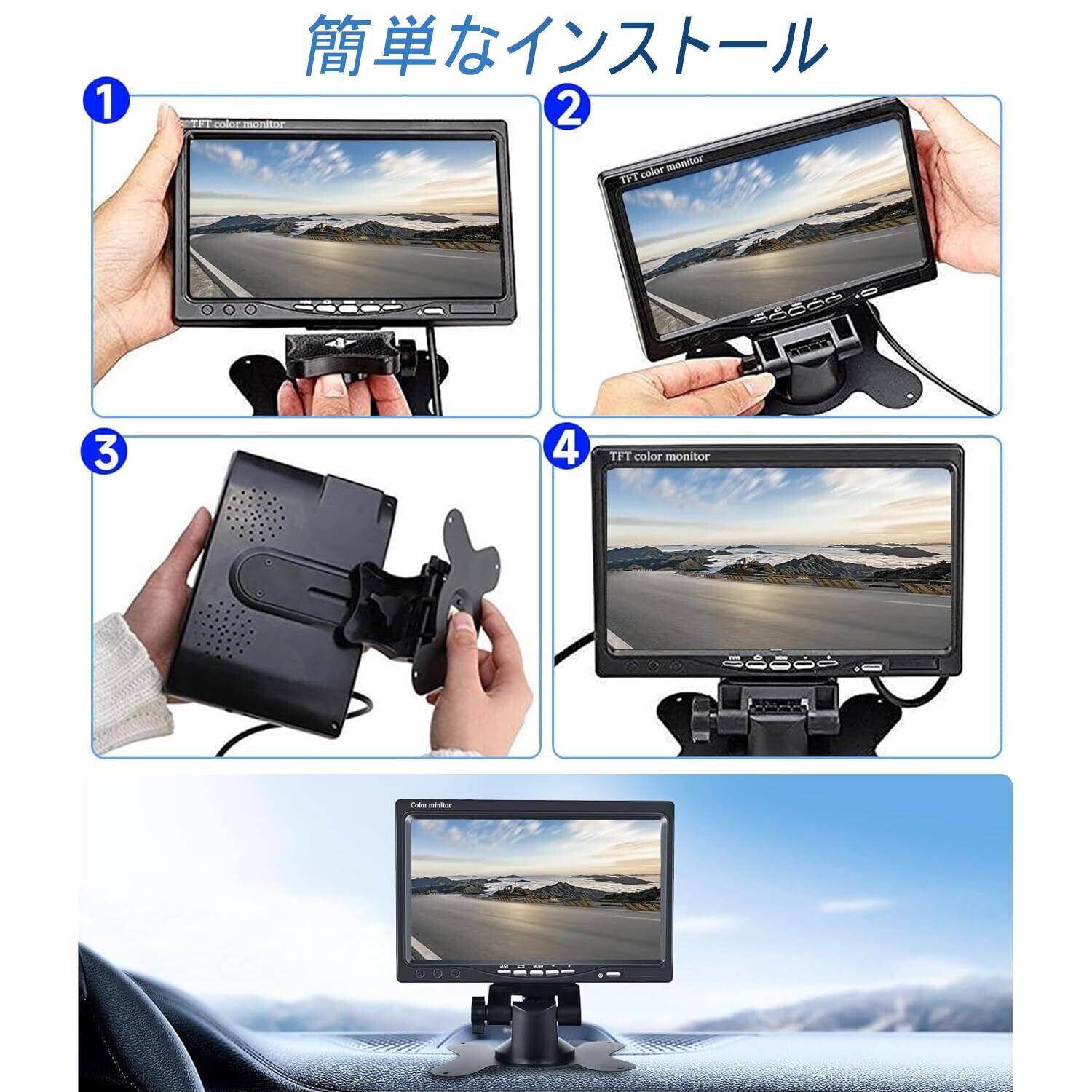 【12V/24V対応】車載モニターは12Vと24Vに対応しており、バン、トラック、バスなどの車両に適しています。ダッシュボードに固定するブラケットが付属しており、取り付けが簡単で、新しい車内ディスプレイ体験をもたらします。
