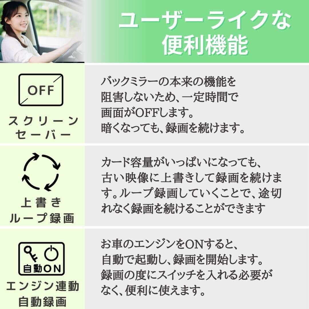 ドライブレコーダー ミラー型 ステッカー 付き 前後 バックカメラ 1080p 高精細カメラ 夜間 駐車監視 衝撃センサー Gセンサー エンジン連動 常時自動録画 動体検知 WDR/HDR ナイトビジョン パーキング監視 監視カメラ 盗難防止