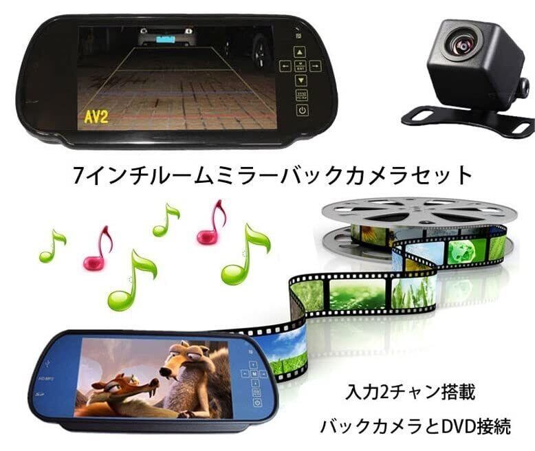 7インチルームミラーモニター 映像2WAY バックカメラに連動可 モコン付き タッチボタン LCD液晶 + 42万画素数 CMD防水バックカメラ広角170° 夜でも見える バックカメラセット RM70+A0119N