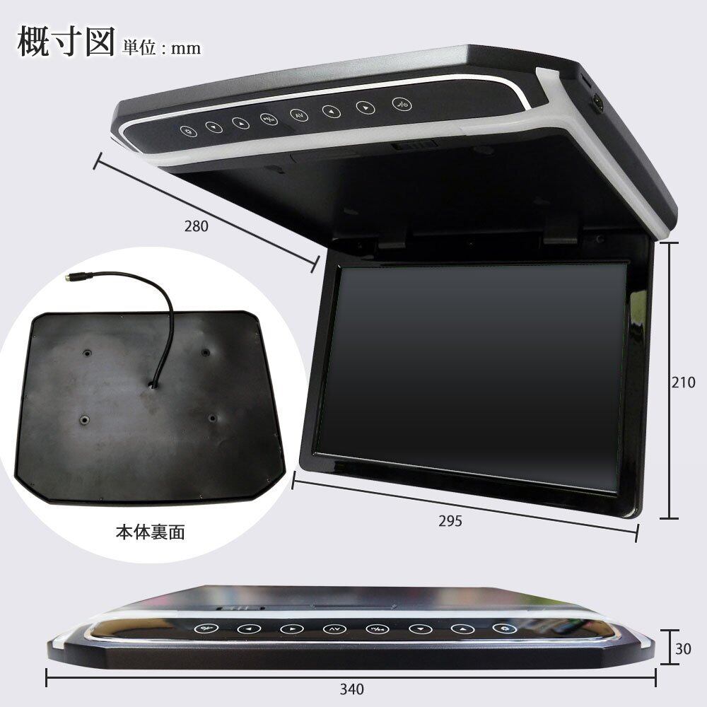 12.1インチ フリップダウンモニター LEDバックライト液晶 HDMI MicroSD対応 12V専用
