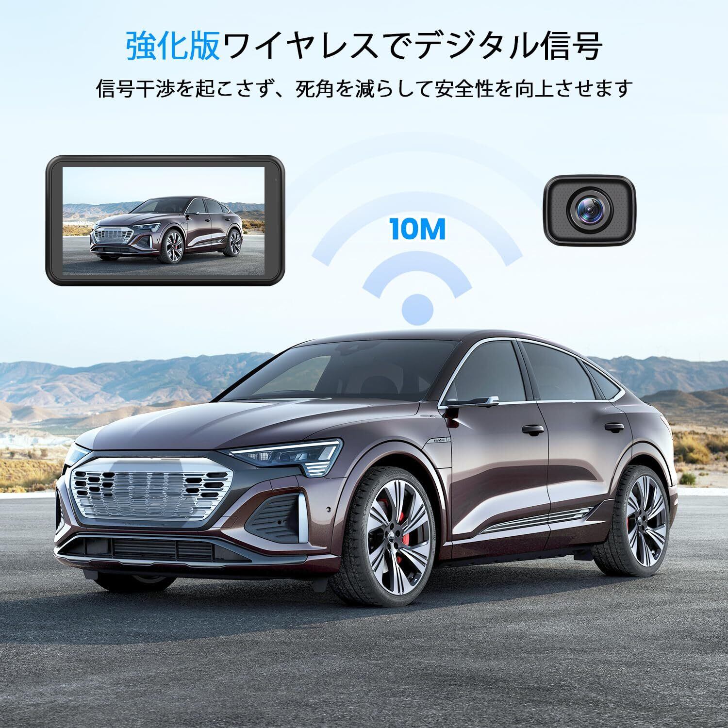 【高度なデジタル信号技術と耐久性】無線 バックカメラは最新の周波数ホッピング技術により、2.4G 無線信号をリアルタイムで伝送。遅延や妨害なく、屋外では最大 100m、車内でも 35 フィートまで安定した通信が可能です。トラック・ピックアップ・バンなど幅広い車種に最適です。