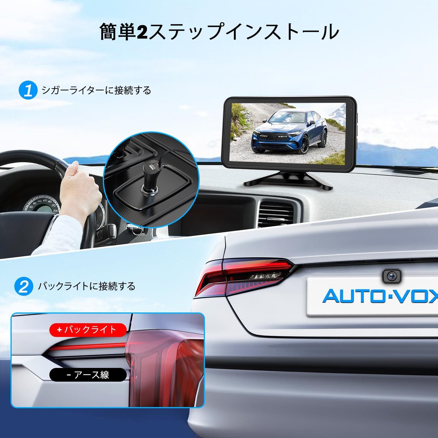 【30 分で簡単インストール】無線 バックモニターW12 は、モニターを点煙器コンセントに、カメラをテールライトまたはバックライトに接続するだけ。初心者でも説明書と動画を参考に 30 分以内に完了できる「プラグアンドプレイ」仕様です。