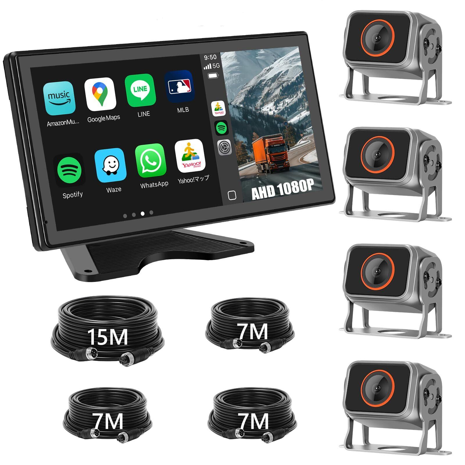 【多機能統合システム&CarPlay/Android Auto対応】このバックカメラモニターは、CarPlayとAndroid Autoに対応可能。お使いのスマホをBluetoothでワイヤレス接続するだけで、ナビゲーション、音楽、動画を大画面で簡単に楽しむことができます。FMトランスミッター接続で車載オーディオと連携が可能です。AirPlay機能にも対応しており、iPhoneのコンテンツをさらに便利に楽しむことができます。4台のAHDカメラとスマホ機能を一体化した、次世代のドライビング体験をお楽しみください。