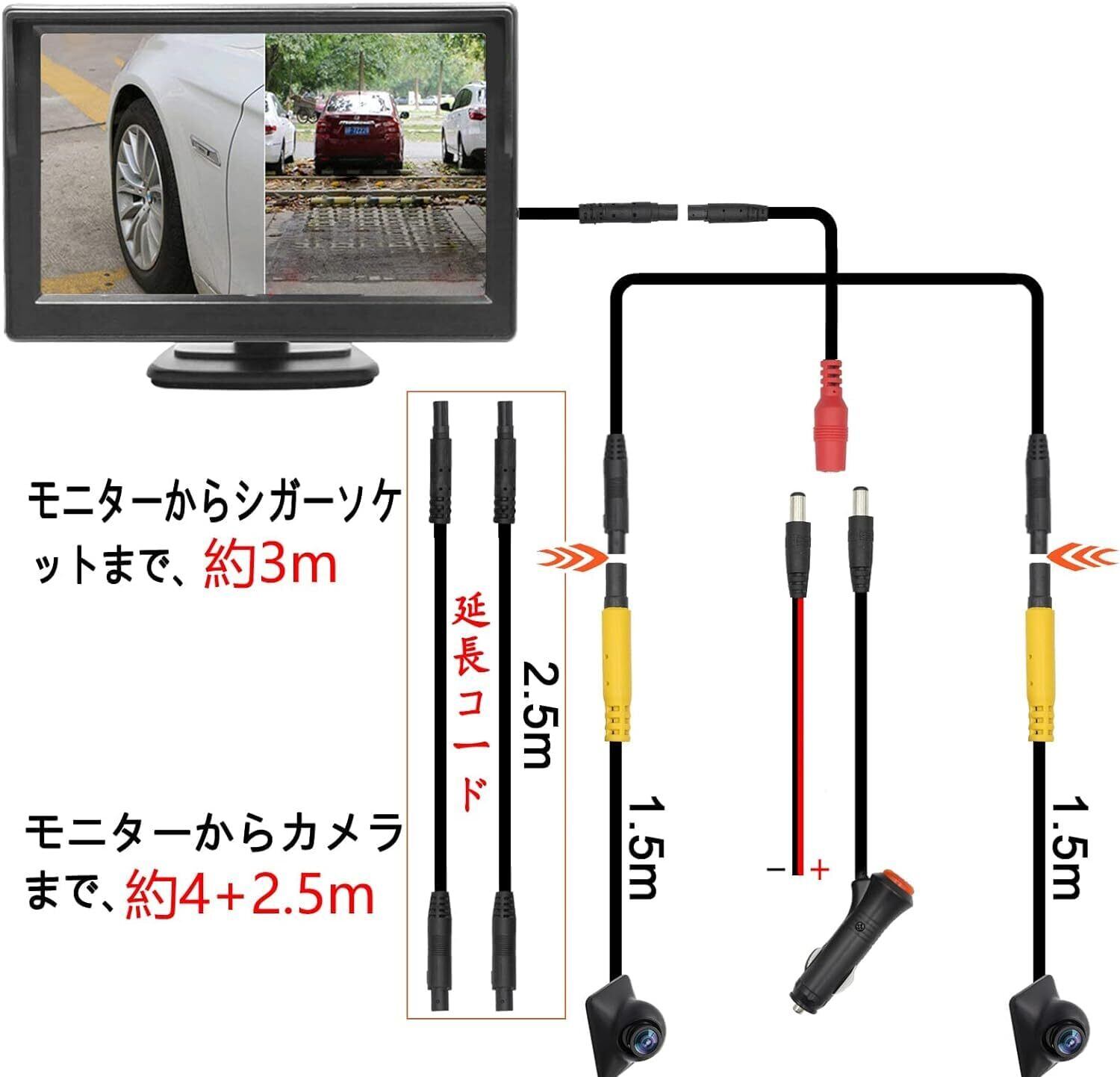 OBEST 5インチモニター バックカメラセット サイド 左右 死角確認 正鏡像切り替え 超強暗視機能 穴開けなくシガーソケット給電 取り付け簡単 12V通用