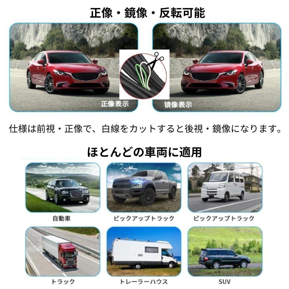 【取り付け簡単】バックモニター、カメラの電源はシガーアダプターから取得。電源供給がワンタッチでき、電源ON/OFFはとても簡単!カメラケーブルに極細コネクターを採用し、カメラケーブルを車内に引き込む際の作業性が更に向上しました。従来の複雑かつ多数な配線を避け、ケーブル一本でモニターとカメラの接続が終了です。初心者の方でも簡単に取り付けられます。【ご注意】カメラが反転せず、映像が不鮮明になる場合、緑の線を再接続してください。