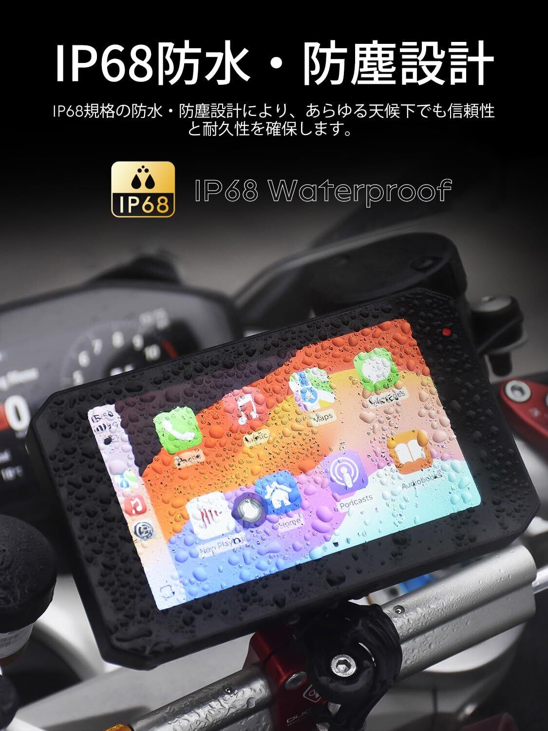 MT5 バイク用ドライブレコーダー バイク ナビ CarPlay/Android Auto対応 Wi-Fi動画転送対応 5インチ 60FPS IPSタッチスクリーン GPS搭載 走行情報表示 3種類のUI選択可 SONY製センサー搭載 1080P前後カメラ IP68防水防塵 駐車モード 64GBストレージ内蔵